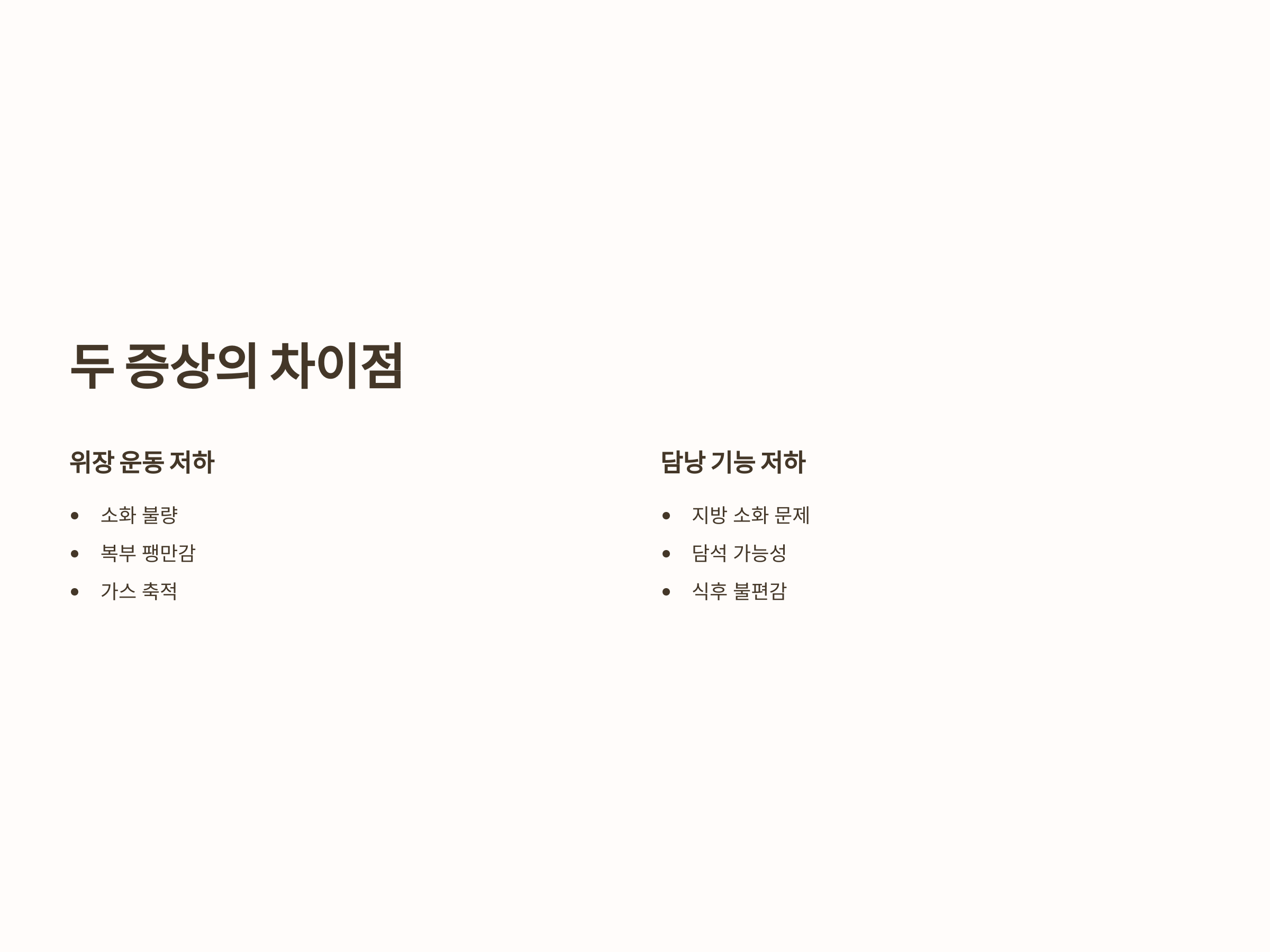 위장 운동 저하와 담낭 기능 저하의 차이점