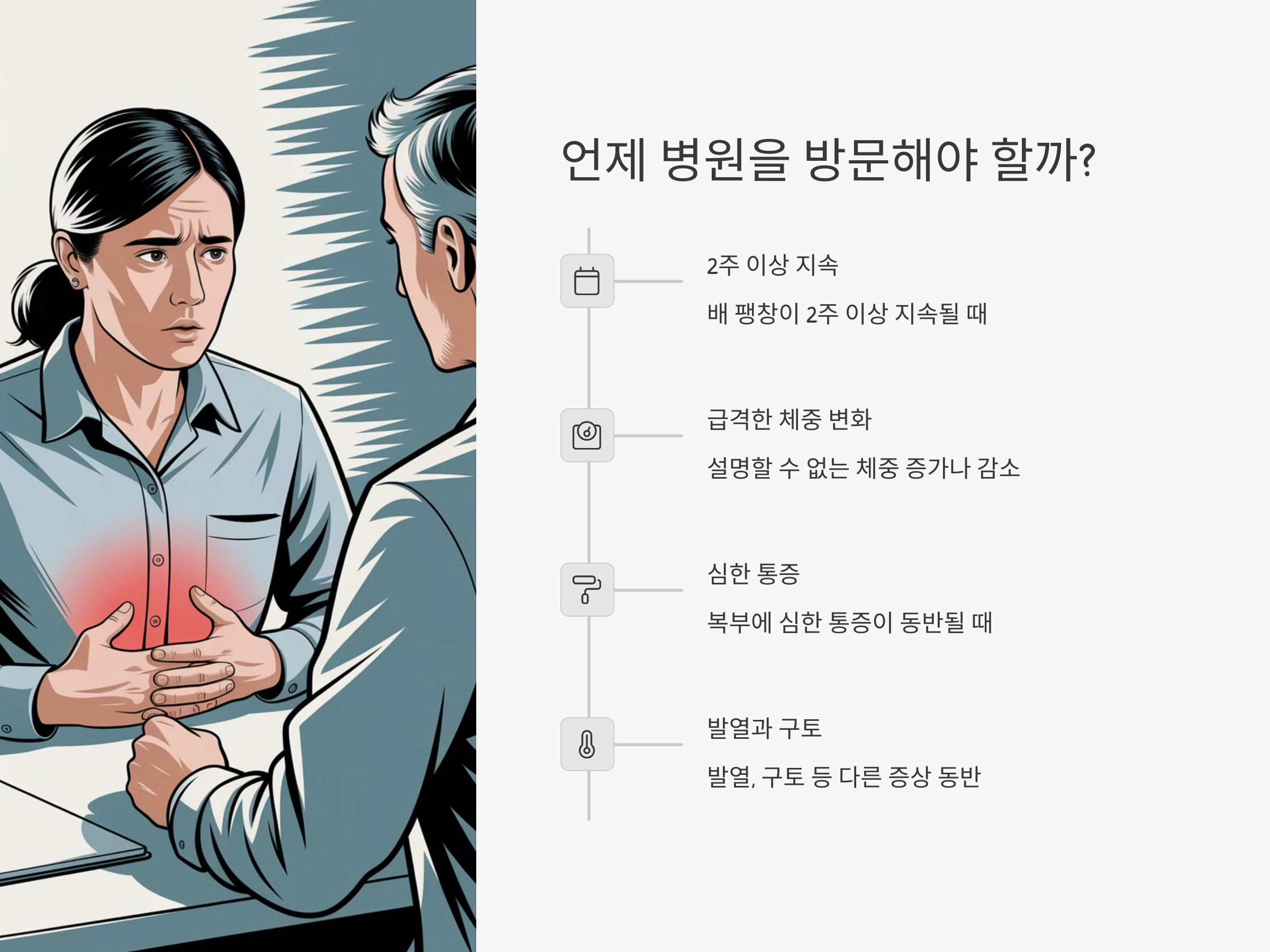 따라서 배가 팽창하고 가스가 차는 증상이 지속된다면, 정확한 진단을 위해 전문가의 진료를 받는 것이 중요합니다.