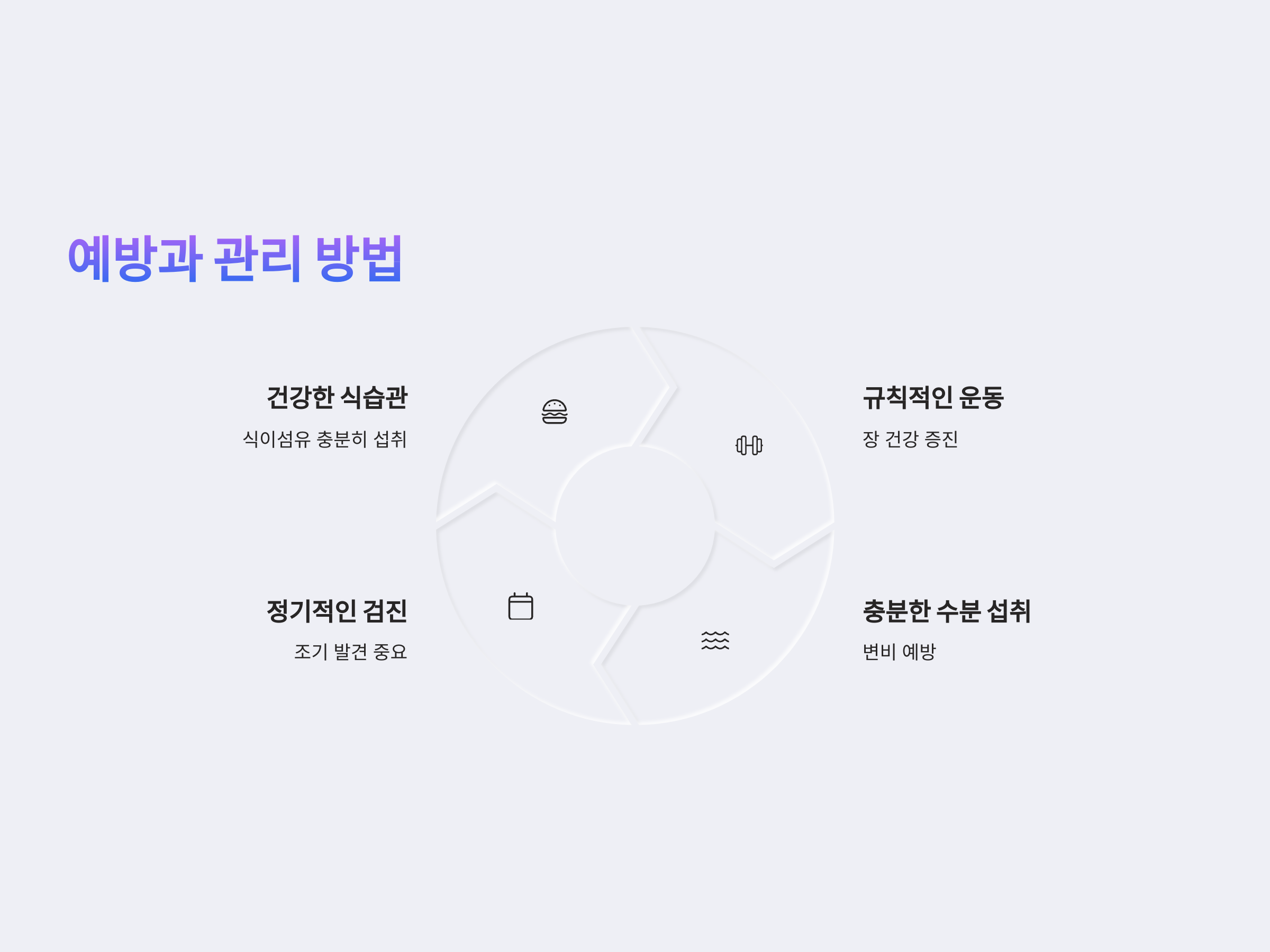 배변 후 잔여감을 예방하기 위해서는 일상적인 관리가 중요합니다. 건강한 식습관, 규칙적인 운동, 충분한 수분 섭취는 직장 협착과 대장암 예방에 큰 도움이 됩니다. 특히, 식이섬유를 충분히 섭취하고, 배변 후에는 충분한 시간 동안 앉아 있는 것이 좋습니다.