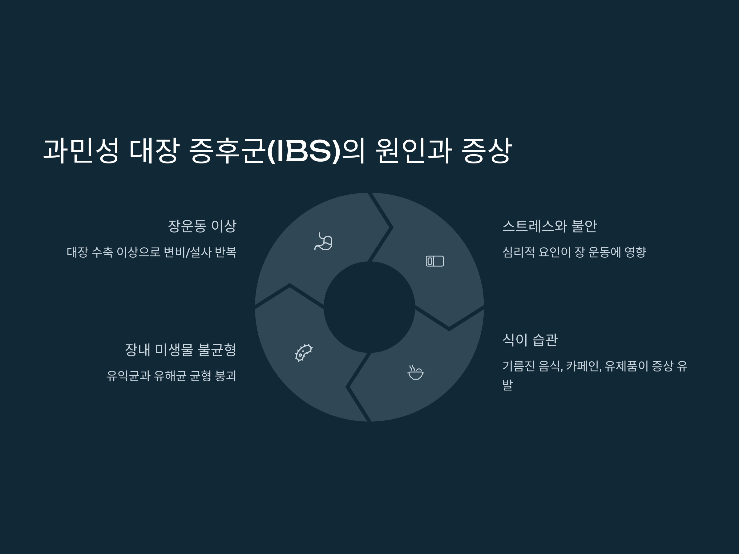 - 스트레스와 불안: 심리적 요인이 장 운동에 영향을 미쳐 증상을 악화시킵니다.
