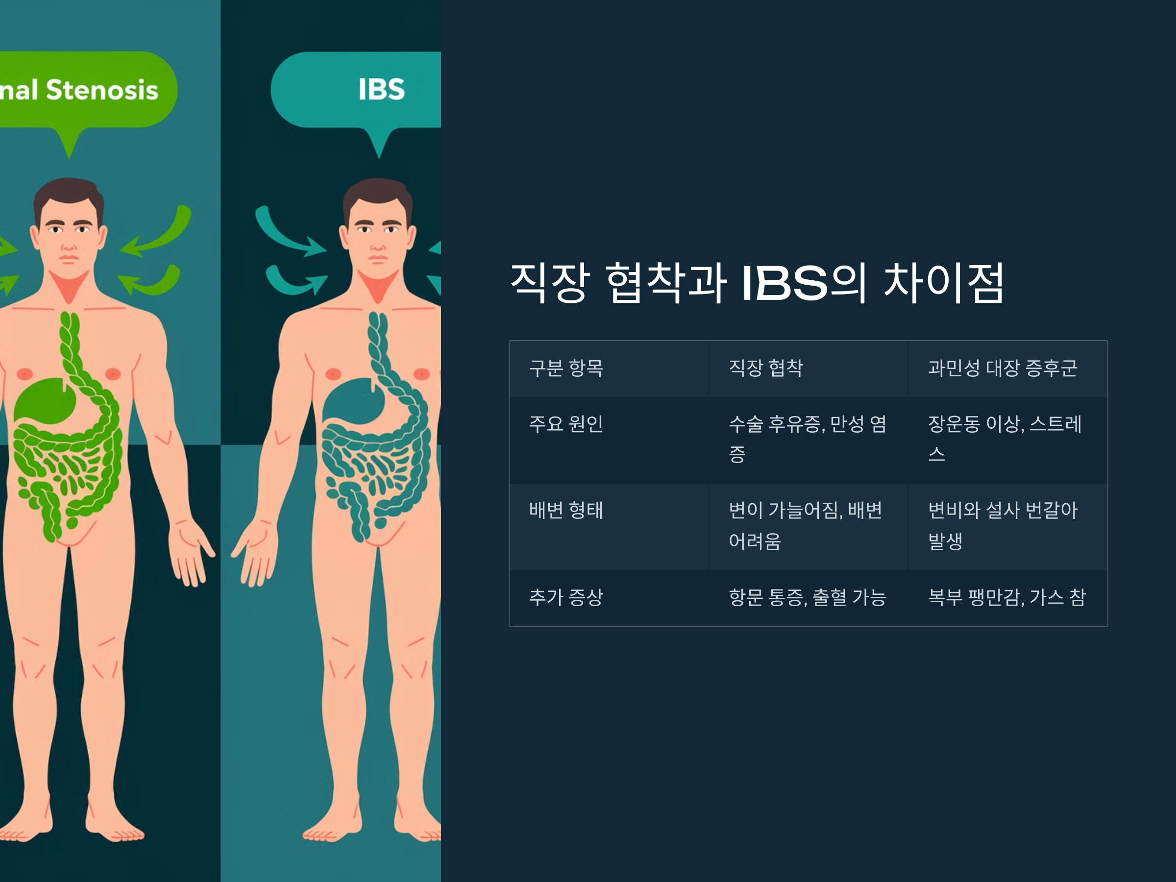 | 구분 항목 | 직장 협착 | 과민성 대장 증후군(IBS) |