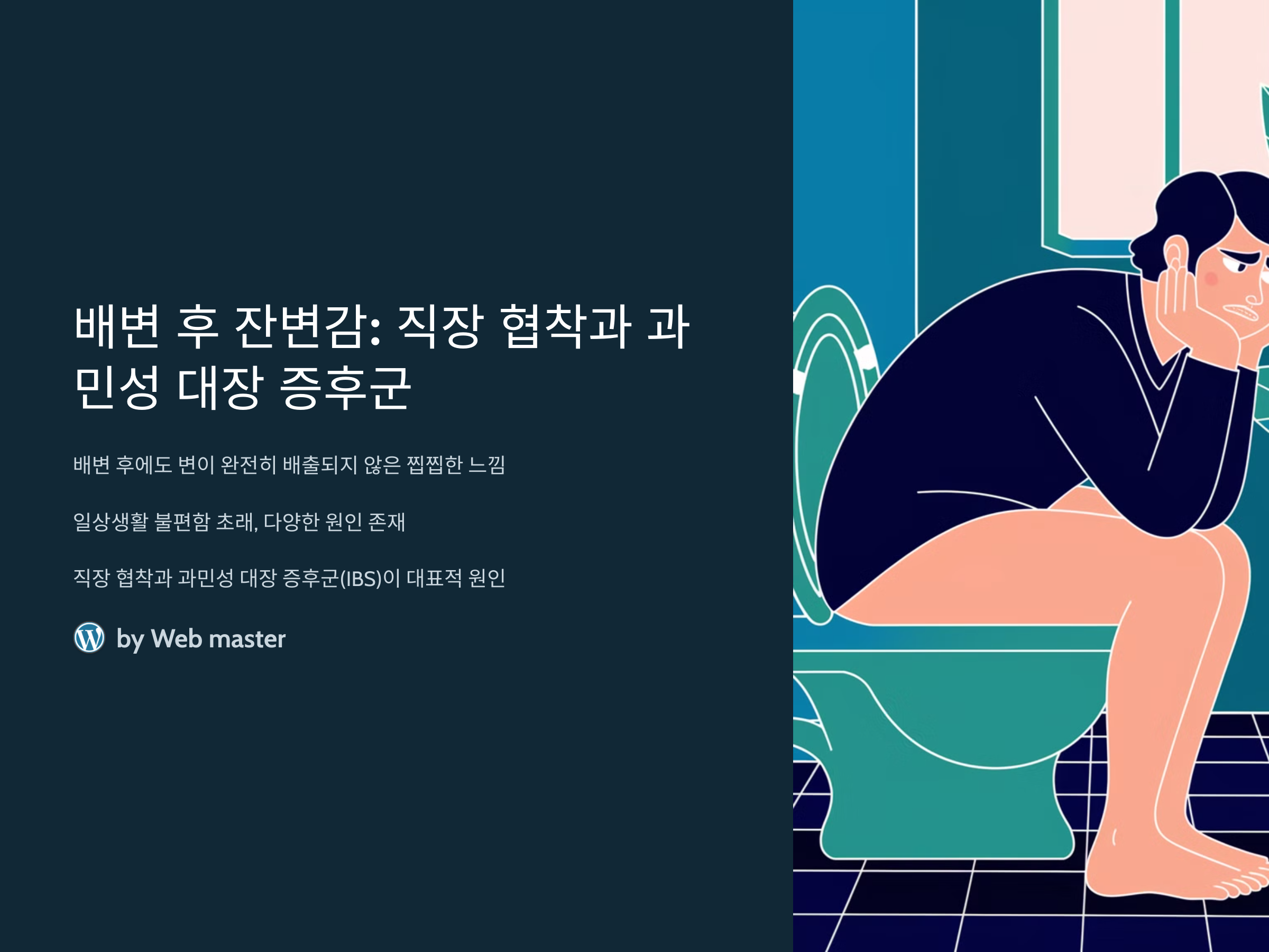 배변 후 잔변감은 다양한 원인에 의해 발생하며, 특히 직장 협착과 과민성 대장 증후군은 그 주요 원인입니다. 자신의 증상을 정확히 파악하고, 적절한 생활 습관 개선과 함께 필요 시 의료기관을 방문하여 정확한 진단과 치료를 받는 것이 중요합니다. 건강한 장을 유지하여 일상의 불편함을 줄여보세요.