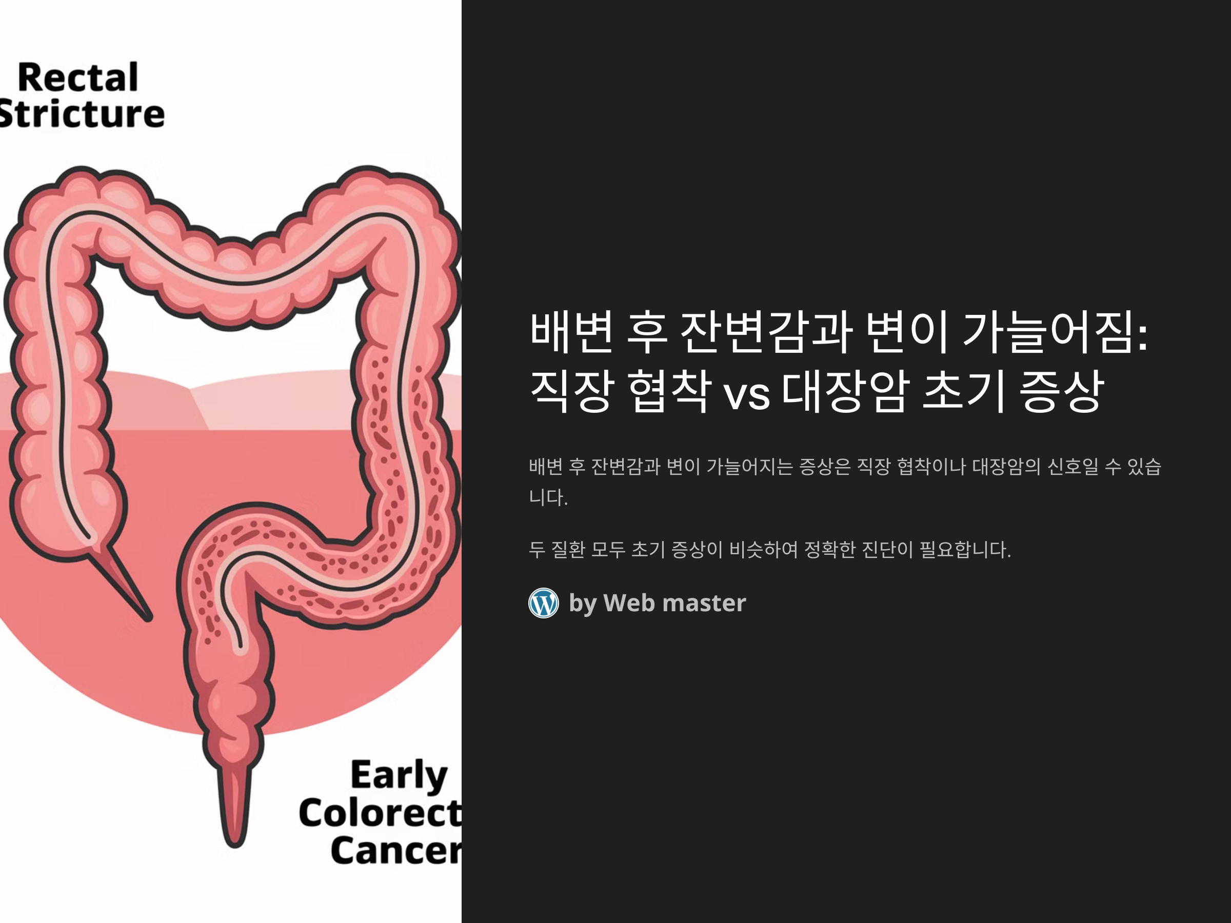 배변 후 잔변감이 남고 변이 가늘어지는 증상은 많은 사람들에게 불편함을 주며, 때로는 심각한 질병의 신호일 수 있습니다. 특히, 직장 협착과 대장암의 초기 증상으로 나타날 수 있기 때문에 이러한 증상을 경험할 경우 신속한 의료 상담이 필요합니다. 본문에서는 직장 협착과 대장암 초기 증상의 주요 특징을 비교하여, 두 질환을 어떻게 구별할 수 있는지 알아보겠습니다.