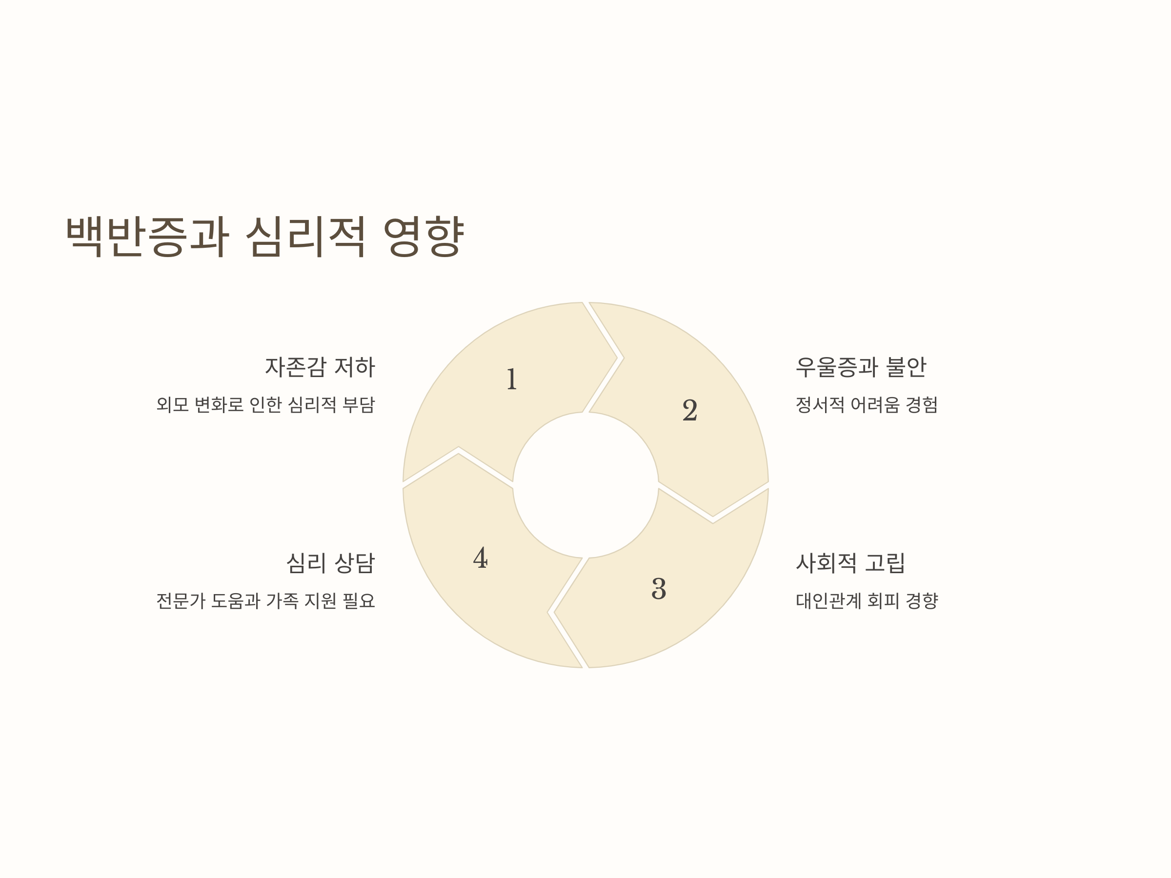 백반증은 피부에 흰 반점이 나타나면서 심리적으로 큰 영향을 미칠 수 있습니다. 특히, 외모에 대한 자아상이 중요한 사람들에게는 자존감에 부정적인 영향을 줄 수 있습니다. 이로 인해 우울증, 불안, 사회적 고립 등의 문제가 발생할 수 있습니다. 이러한 심리적 문제는 치료와 관리뿐만 아니라, 정서적인 지원이 필요합니다.