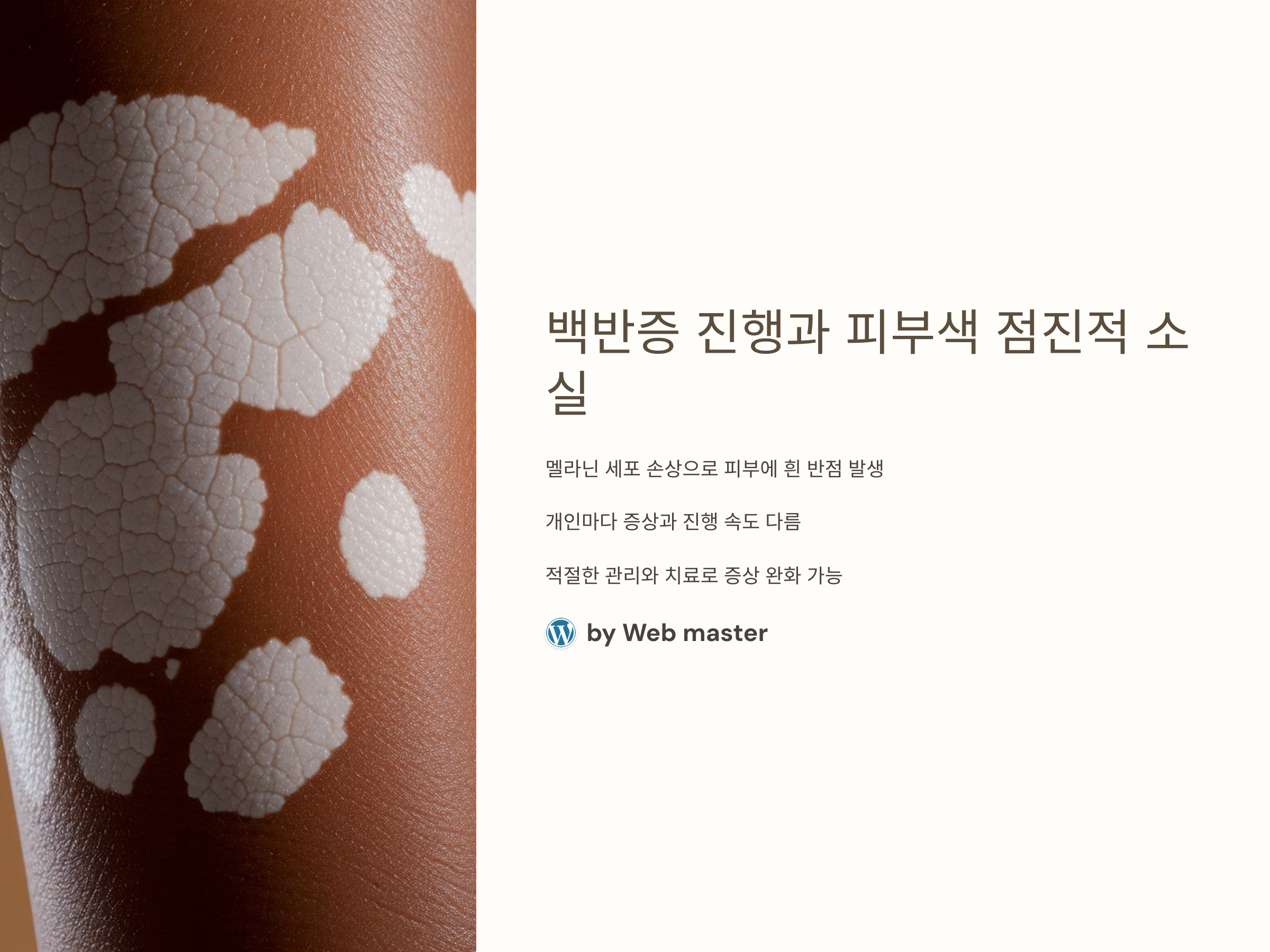 백반증은 피부의 멜라닌 세포가 손상되거나 파괴되어 피부에 흰 반점이 나타나는 질환입니다. 이 질환은 주로 점진적인 피부색 소실이 특징이며, 시간이 지남에 따라 점차적으로 확장될 수 있습니다. 백반증은 발생 원인에 따라 개개인의 증상과 진행 속도가 다를 수 있습니다. 이 글에서는 백반증의 진행 과정을 이해하고, 어떻게 피부 색소 소실을 관리할 수 있는지에 대해 다뤄보겠습니다.