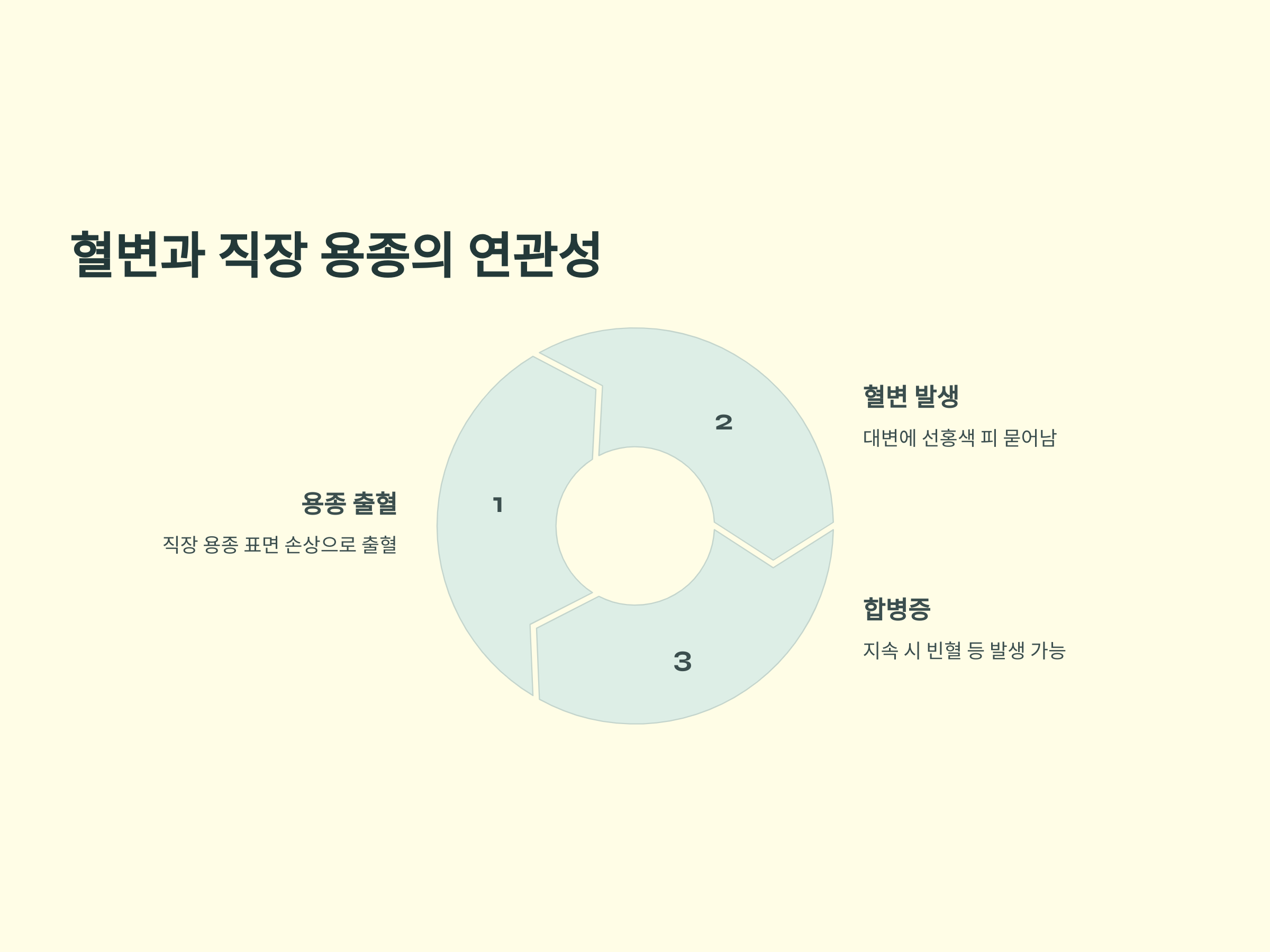 혈변은 대변에 피가 섞여 나오는 증상을 말합니다. 직장 용종은 출혈을 일으킬 수 있으며, 이는 대변에 선홍색 피가 묻어나오는 형태로 나타날 수 있습니다. 이러한 증상이 지속되면 빈혈 등의 합병증이 발생할 수 있으므로 즉각적인 의료 상담이 필요합니다.