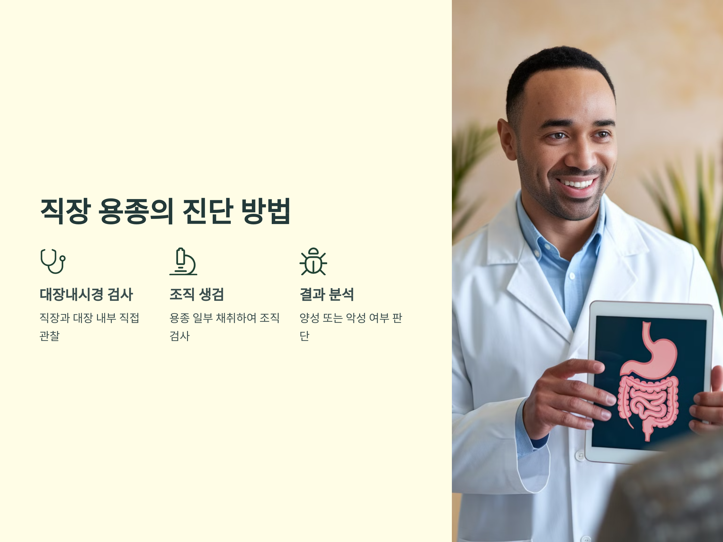 직장 용종을 진단하기 위해서는 다음과 같은 검사가 필요합니다: