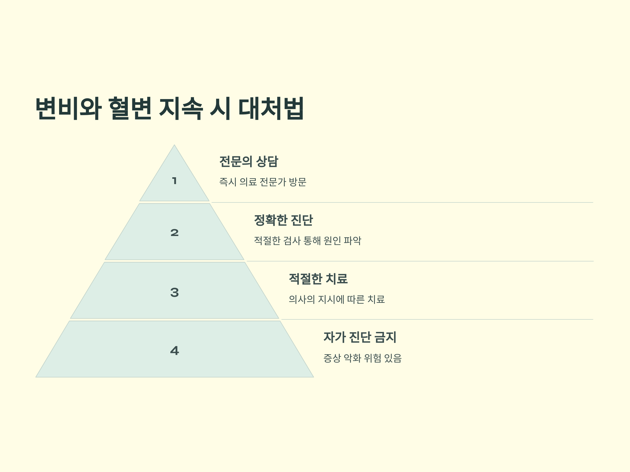 변비와 혈변이 지속되거나 악화된다면, 즉시 의료 전문가와 상담해야 합니다. 이러한 증상은 직장 용종뿐만 아니라 다른 심각한 질환의 신호일 수 있으므로 정확한 진단과 치료가 필요합니다. 자가 진단이나 치료는 증상을 악화시킬 수 있으므로 반드시 전문의의 지시에 따라야 합니다.
