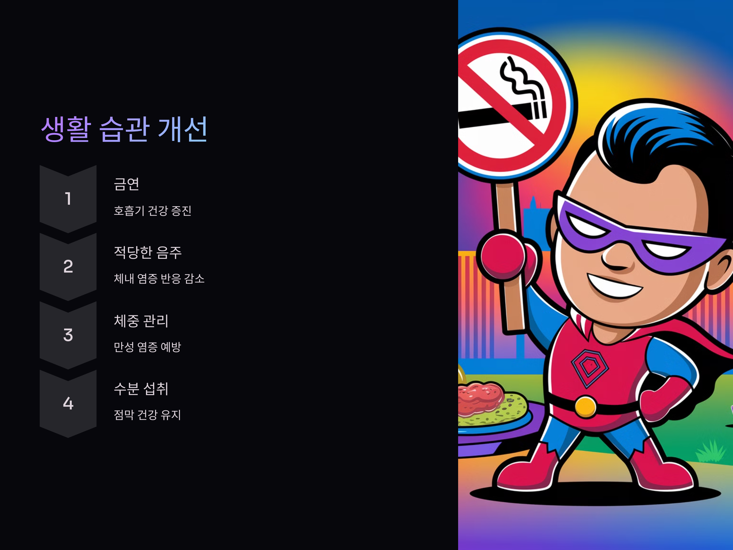 첫째, 흡연을 피하고, 음주를 적당히 하는 것이 중요합니다. 흡연은 호흡기 질환을 악화시키고, 면역력을 약화시킬 수 있습니다. 음주는 체내의 염증 반응을 증가시키므로, 적당히 음주하는 것이 좋습니다.