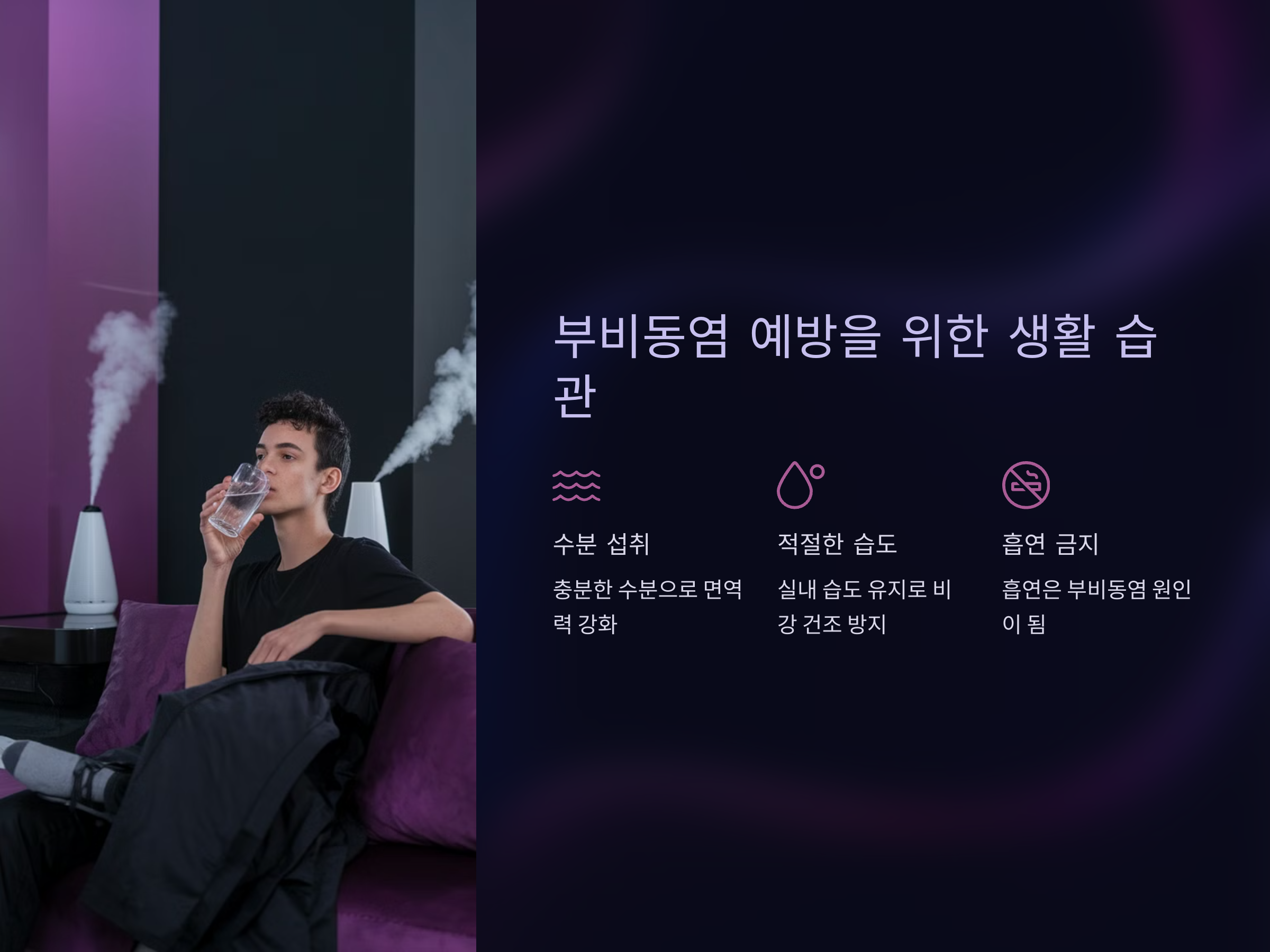 - 적절한 습도 유지: 건조한 환경은 부비동을 자극하여 염증을 유발할 수 있습니다. 실내 습도를 적절히 유지해 주세요.