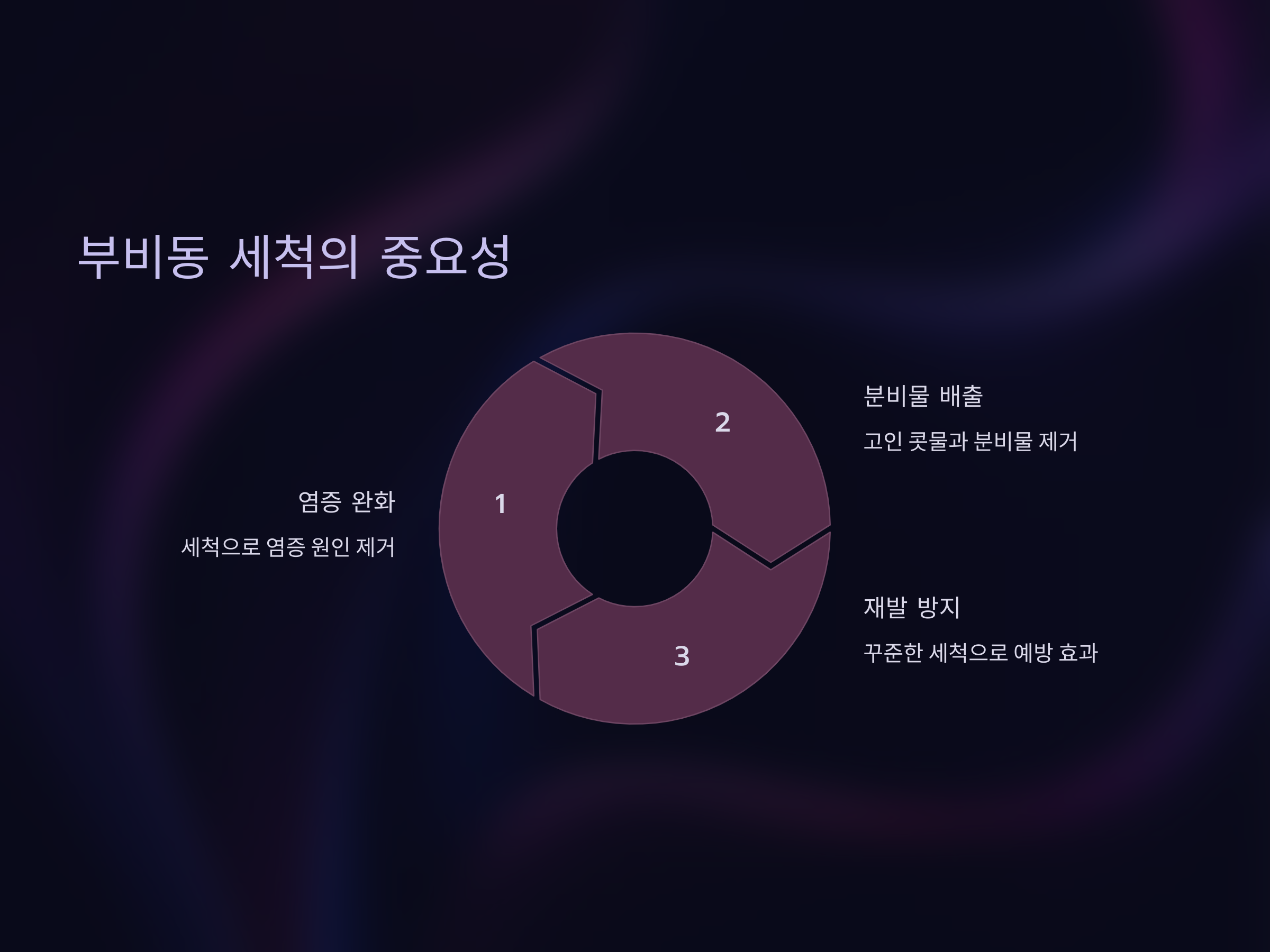 부비동 세척은 부비동염 치료에 있어 매우 중요한 과정입니다. 세척을 통해 염증을 완화하고, 콧물이나 기타 분비물들을 배출할 수 있기 때문입니다. 특히, 세척은 부비동염의 원인인 세균이나 바이러스를 제거하는 데 도움을 줍니다.