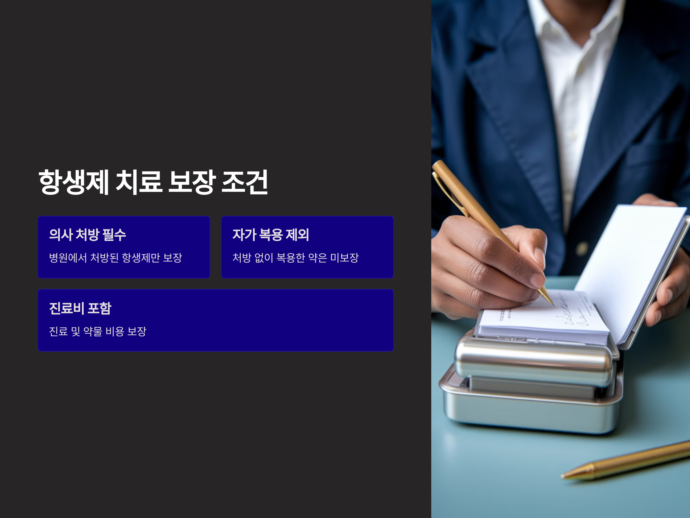 그러나 중요한 점은 치료를 시작할 때 보험 적용 대상이 되는지 확인하는 것입니다. 만약 항생제 치료가 의사의 처방 없이 스스로 약을 복용한 경우에는 실손보험에서 보장하지 않는 경우가 많습니다. 즉, 처방에 따라 이루어진 항생제 치료만이 보장받을 수 있다는 점을 명심해야 합니다.