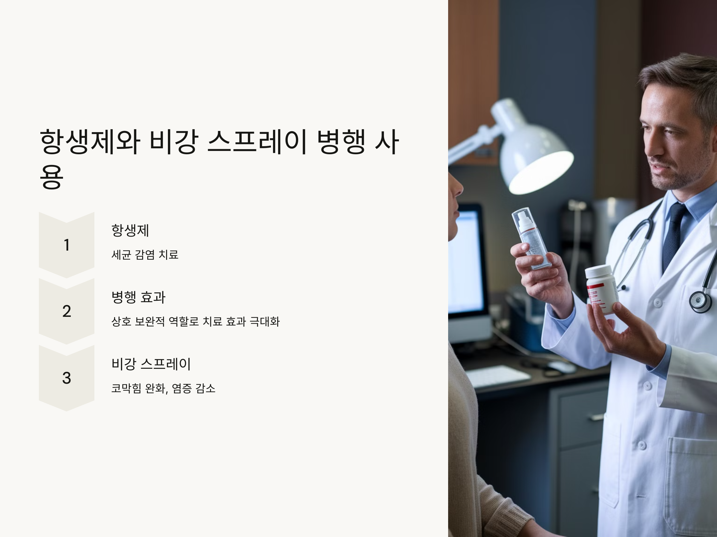 항생제와 비강 스프레이의 병행 사용