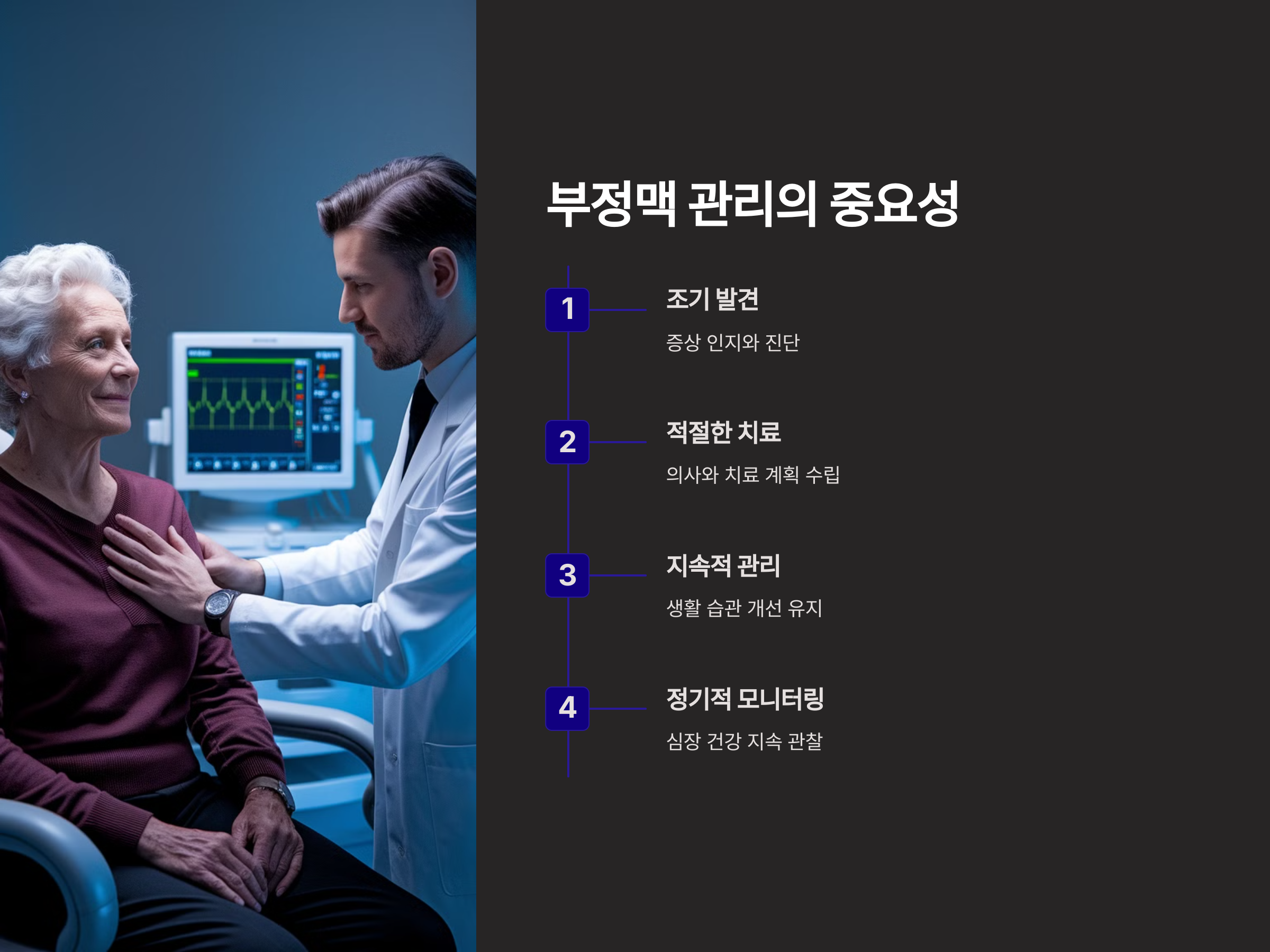 부정맥 예방을 위해서는 건강한 생활 습관이 필수적입니다. 균형 잡힌 식단, 적절한 운동, 충분한 수면은 심장 건강을 유지하는 데 도움이 됩니다. 또한, 과도한 알코올 섭취나 흡연은 부정맥의 위험을 높일 수 있으므로 피하는 것이 좋습니다. 정기적인 건강 검진을 통해 심장 상태를 모니터링하는 것도 중요합니다.