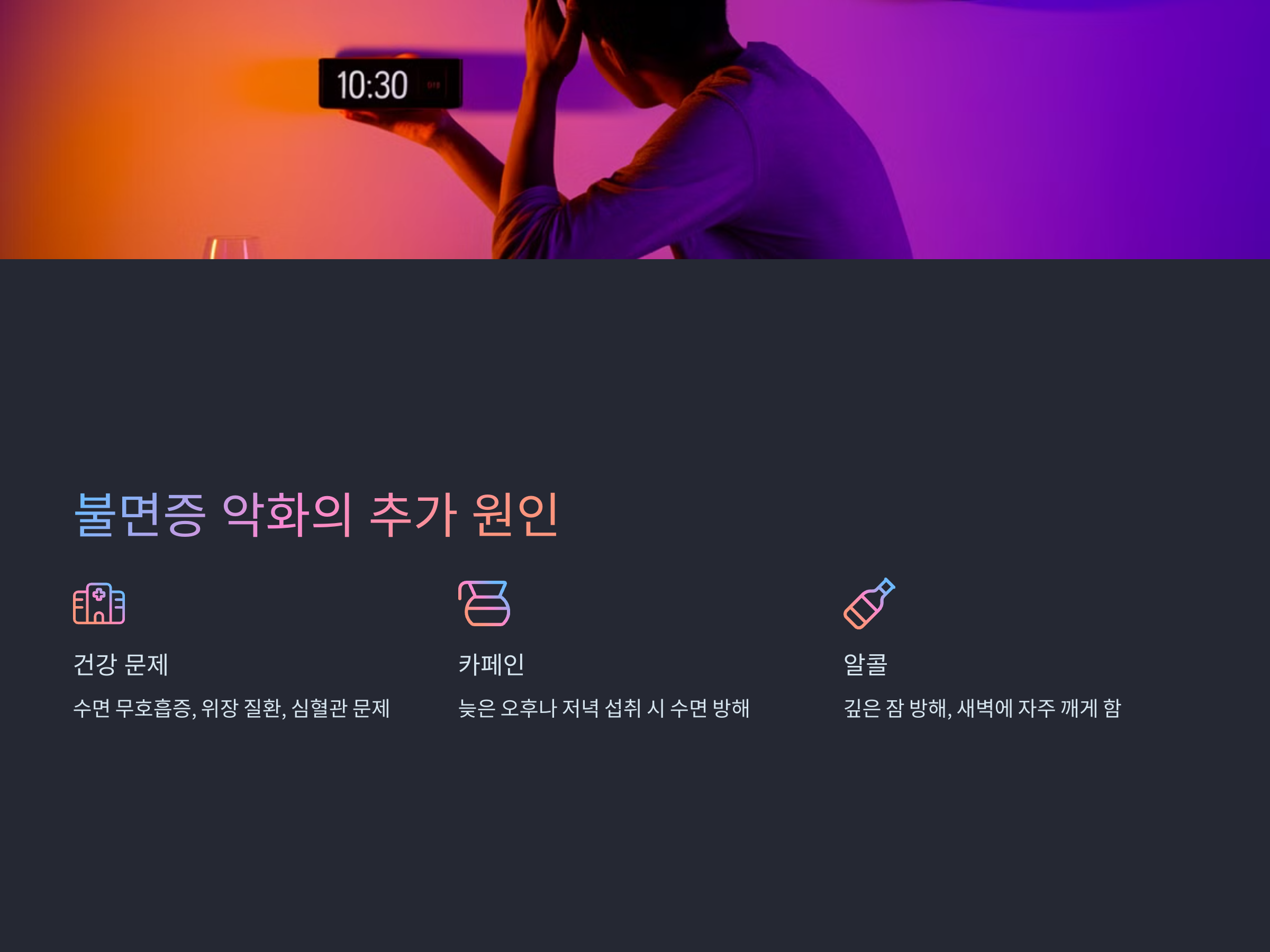 불면증은 단순한 수면 부족 문제에 그치지 않습니다. 건강에 심각한 영향을 미칠 수 있기 때문에, 이를 개선하기 위한 노력이 필요합니다. 불면증의 원인을 정확히 파악하고, 건강한 수면 패턴을 유지하는 것이 중요합니다. 불면증을 해결하는 첫걸음은 자신에게 맞는 방법을 찾는 것입니다.