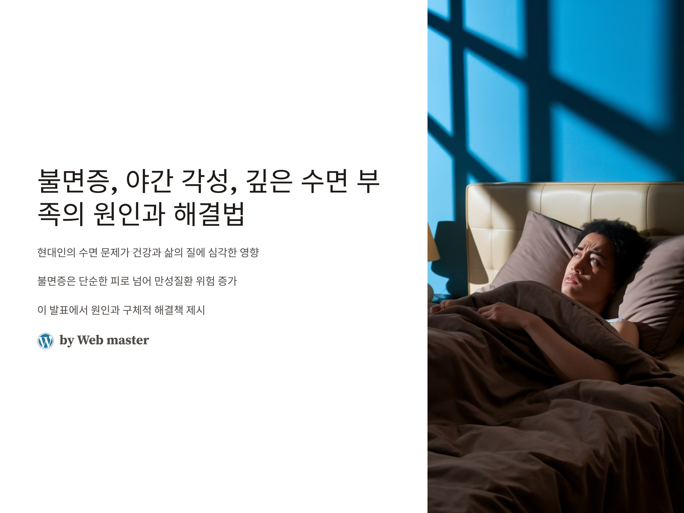불면증 해결법 더 알아보기수면의 질 개선을 위한 공식 가이드 확인하기 수면과 스트레스 관리 방법 자세히 보기