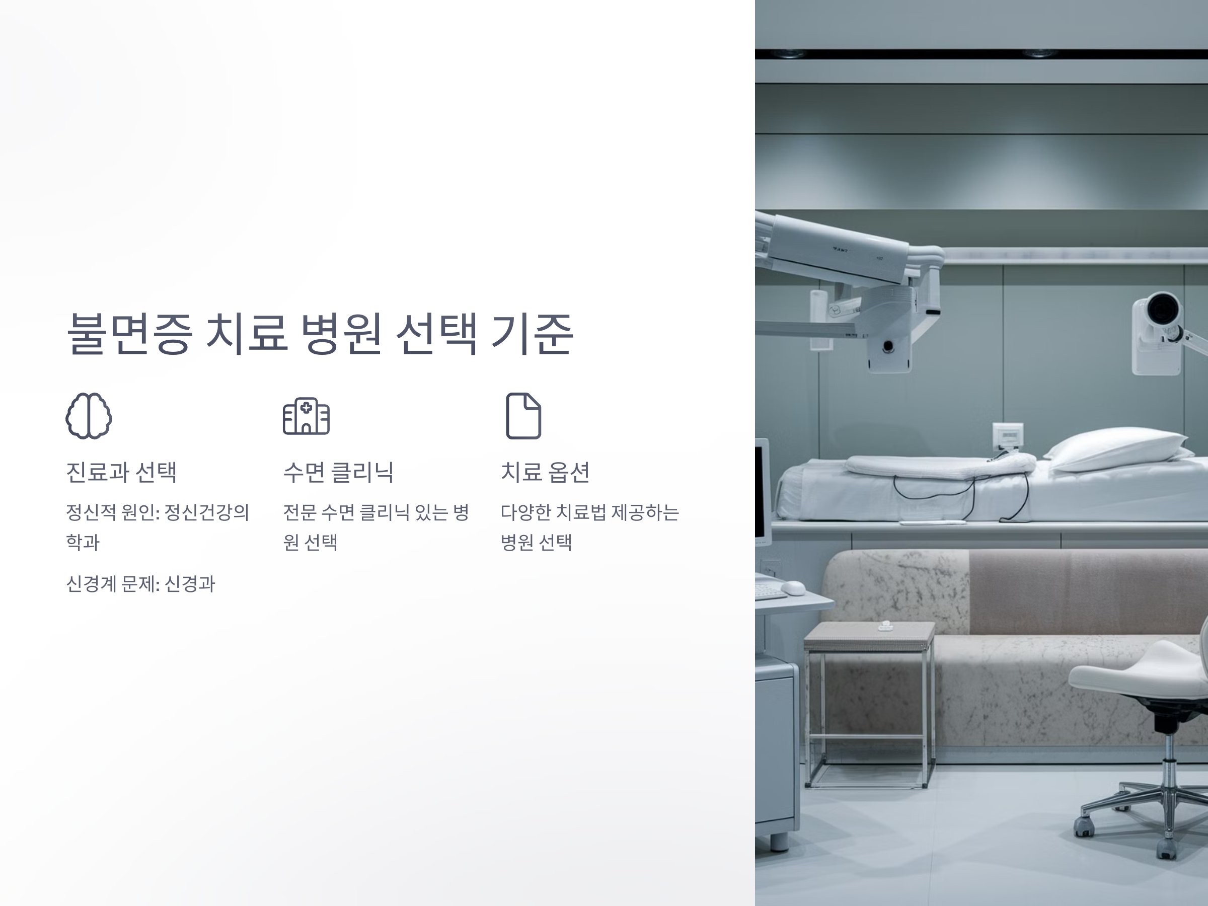 불면증 치료를 위해 병원을 선택할 때는 전문성과 치료 방식을 고려해야 합니다.