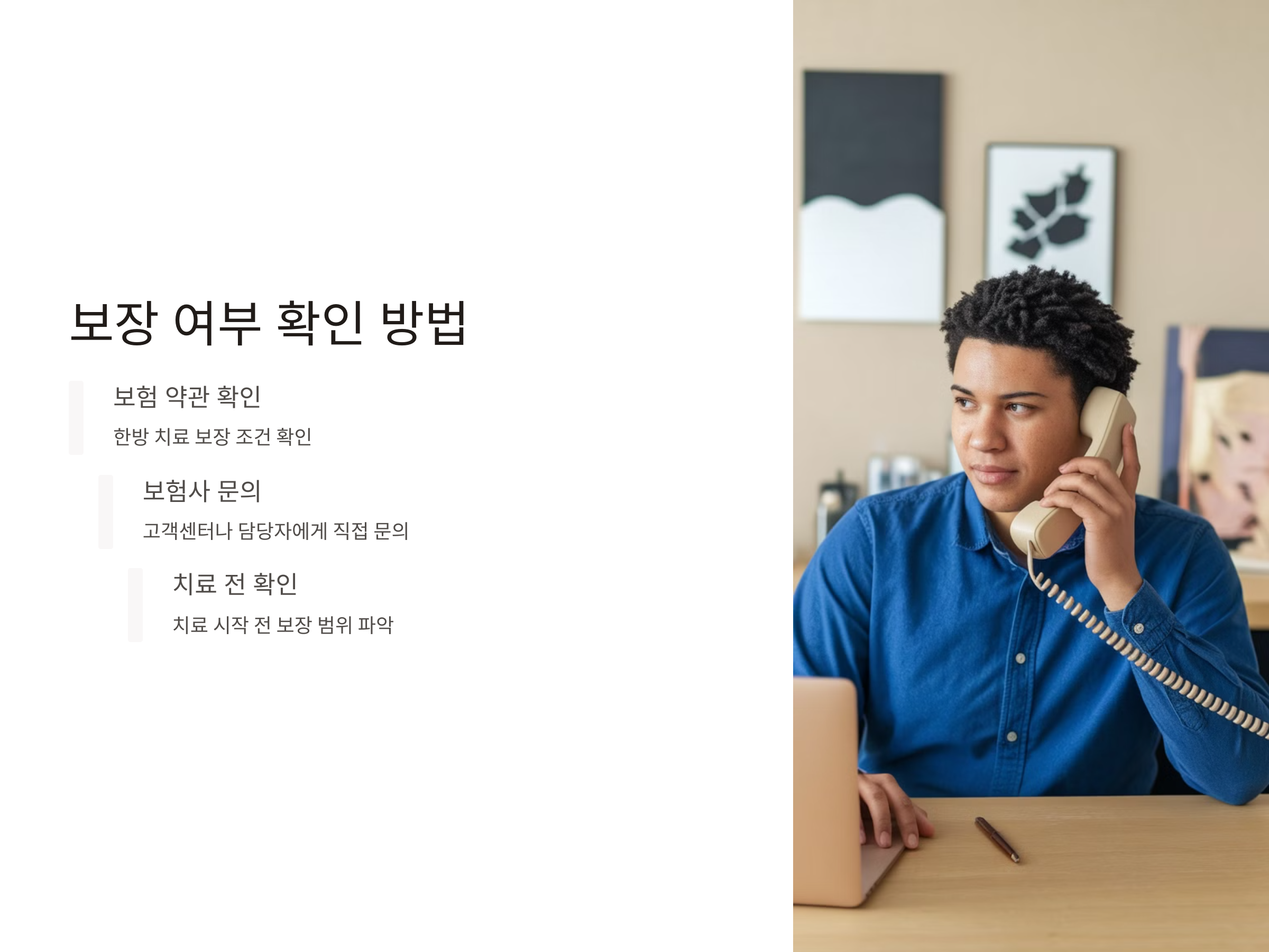 보험 약관만으로 명확한 답을 얻기 어렵다면, 보험사 고객센터나 담당자에게 직접 문의하여 한방 치료가 보장되는지에 대해 확인하는 것이 좋습니다. 이를 통해 보다 정확한 정보를 얻을 수 있습니다.