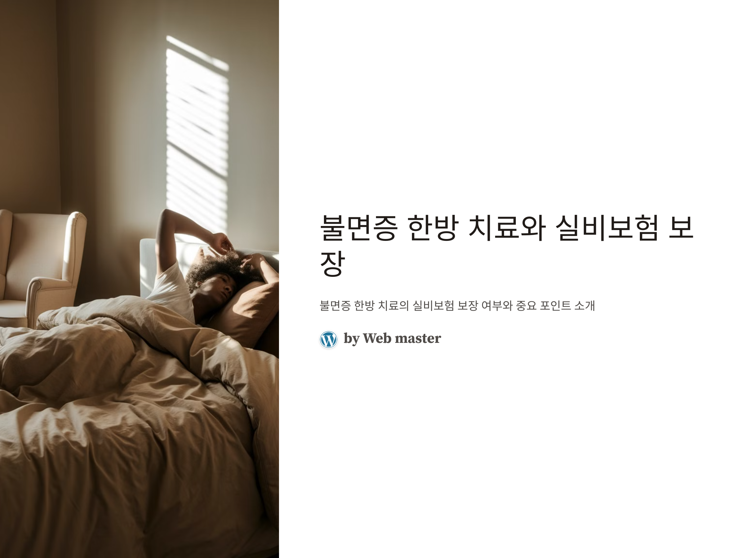 불면증 치료를 위해 한방 치료를 고려하고 있다면, 실비보험을 통해 일부 비용을 보장받을 수 있는 기회가 있을 수 있습니다. 그러나 보험사의 약관과 조건에 따라 다를 수 있기 때문에, 이를 미리 확인하고 치료 계획을 세우는 것이 중요합니다. 불면증은 오래 방치하면 건강에 심각한 영향을 미칠 수 있으므로, 적극적으로 치료를 받는 것이 바람직합니다.