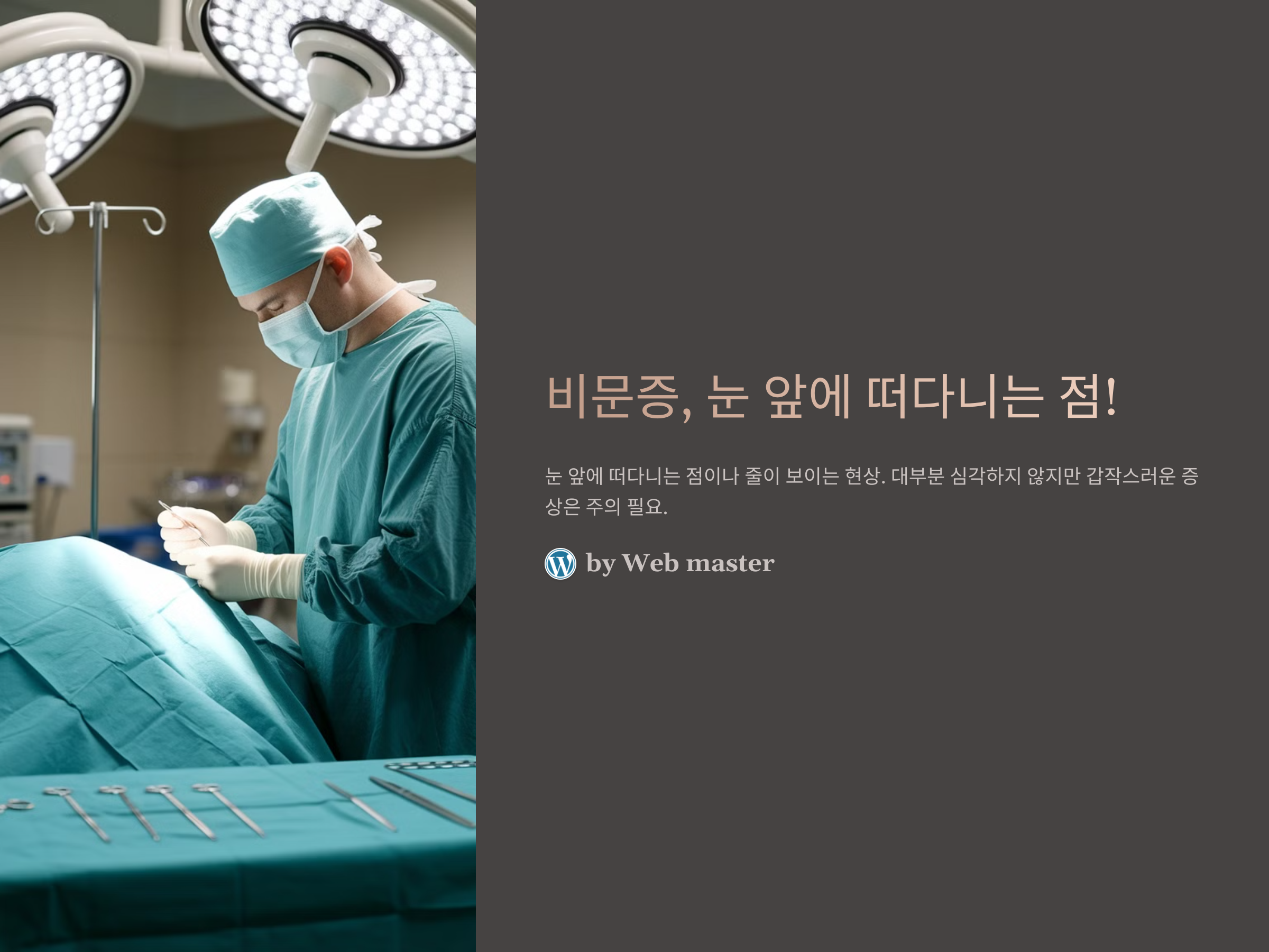 드물지만, 비문증이 심각한 상태로 발전하여 다른 합병증이 생길 경우에는 수술이 필요할 수 있습니다. 예를 들어, 유리체가 망막에 문제가 생긴 경우 유리체 절제술을 통해 문제를 해결할 수 있습니다.