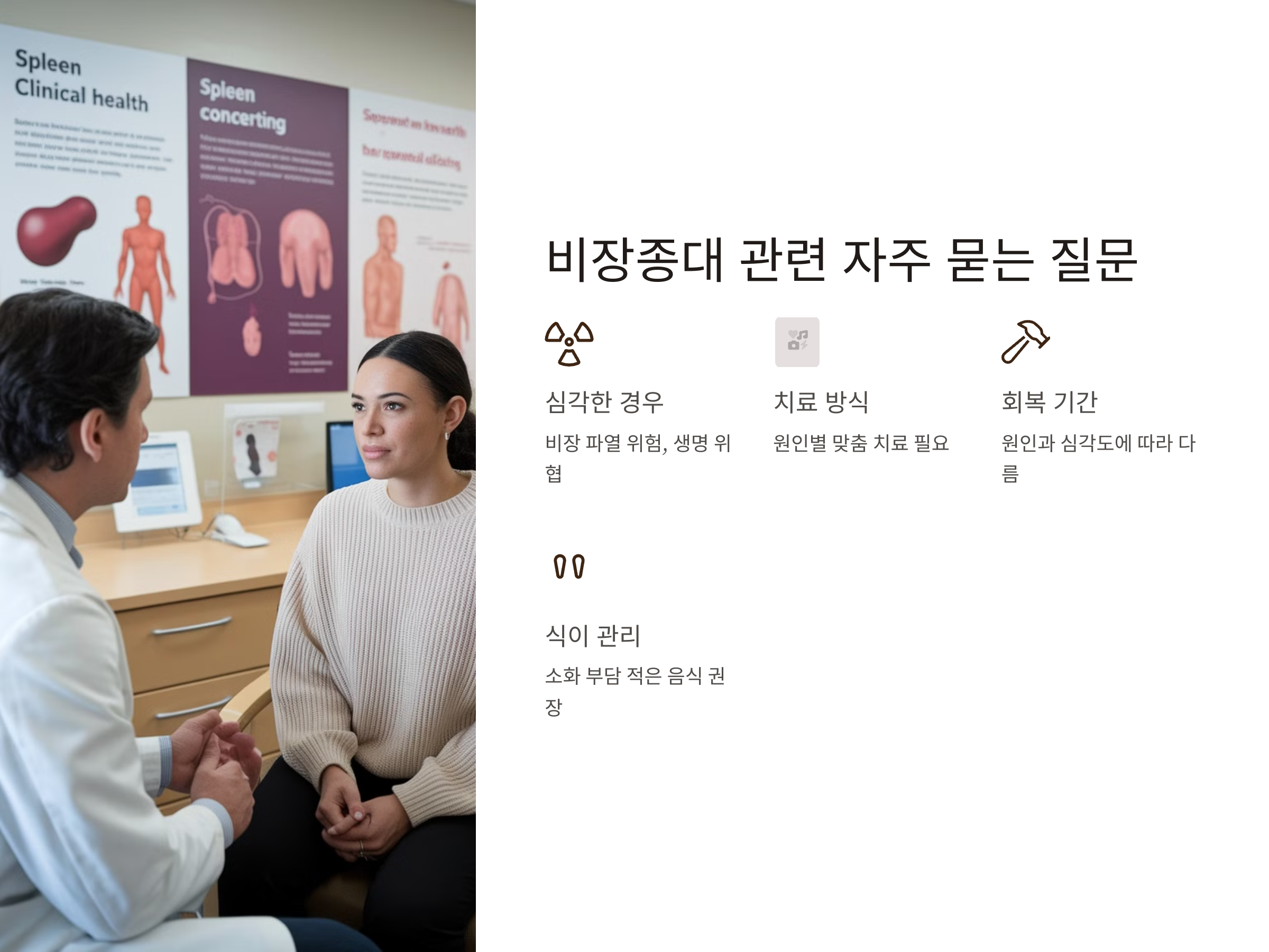 비장종대가 심해지면 비장이 파열될 수 있으며, 이 경우에는 생명에 위협이 될 수 있습니다. 비장의 파열은 급격한 통증과 함께 출혈을 일으킬 수 있기 때문에 즉각적인 치료가 필요합니다.