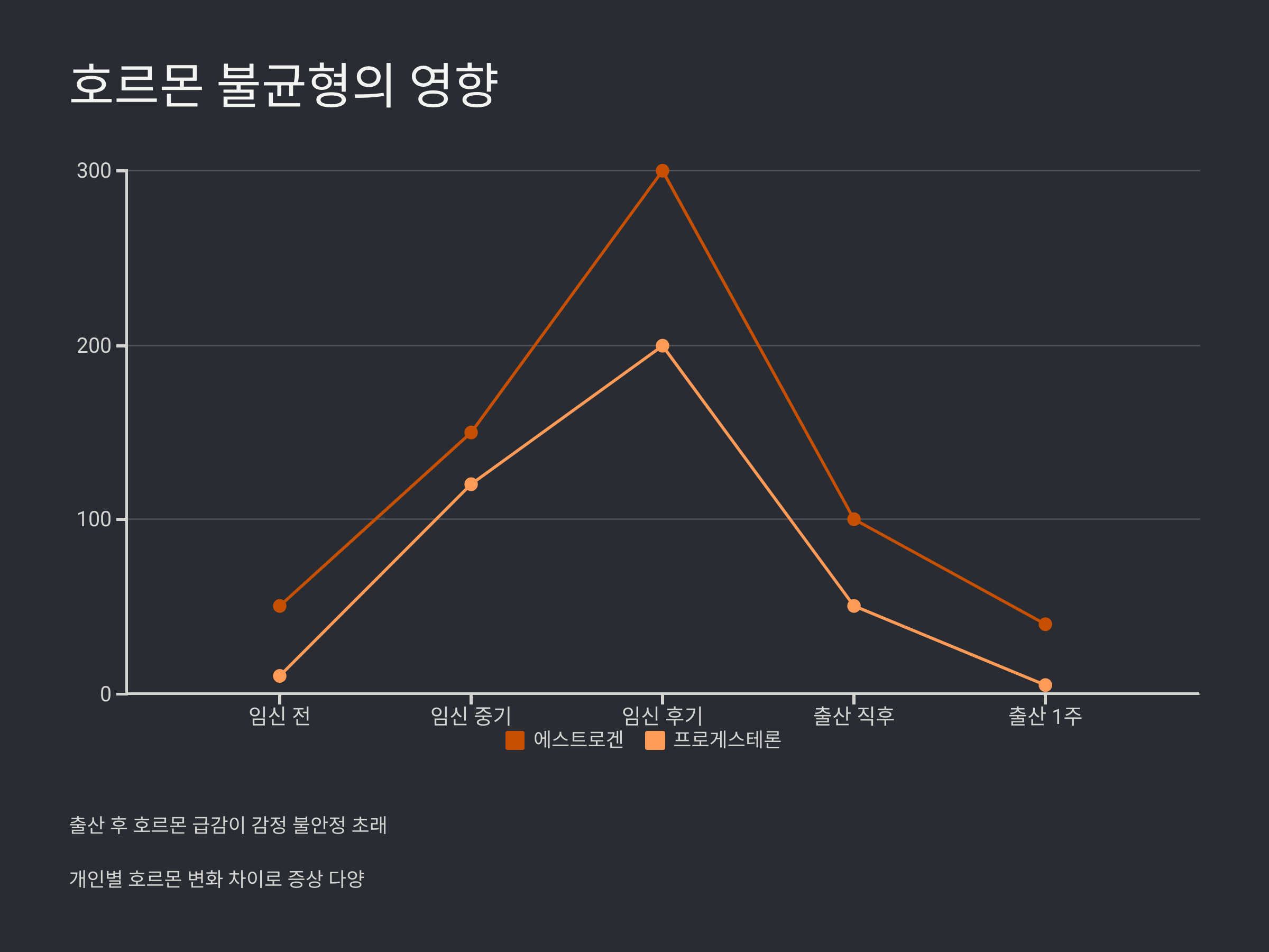 산후 우울증은 호르몬 불균형과도 깊은 연관이 있습니다. 임신과 출산 과정에서 체내 호르몬은 급격히 변합니다. 출산 후, 에스트로겐과 프로게스테론 수치가 급격히 떨어지면서 뇌의 화학적 변화가 일어나고, 이는 감정적인 불안정성을 초래할 수 있습니다. 호르몬 변화는 신경전달물질에 영향을 미쳐 우울감을 증대시킬 수 있습니다.