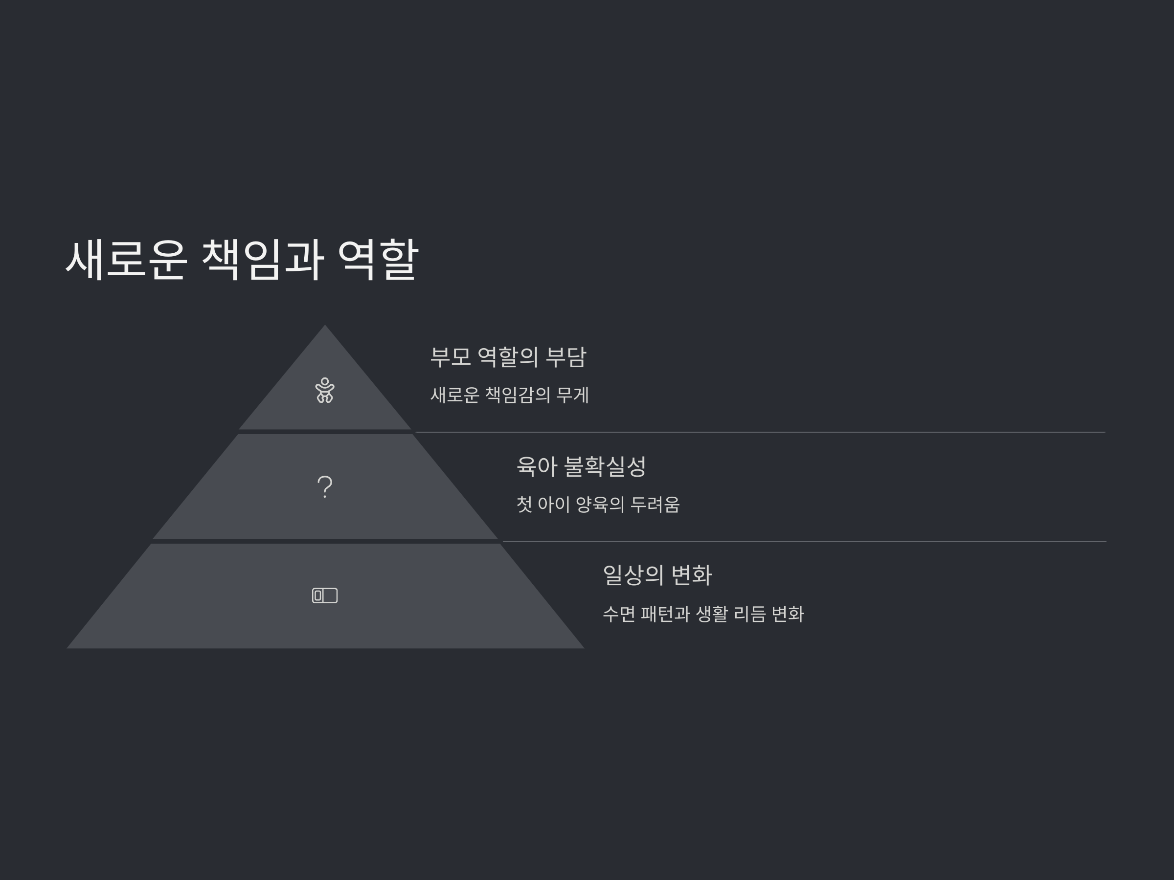 아이의 수면 패턴, 건강 문제, 양육 방식 등 새로운 문제들에 대한 스트레스가 우울감을 유발할 수 있습니다. 또한, 출산 후 혼자서 모든 책임을 떠맡아야 한다는 느낌이 들어 더욱 불안해지고, 자신감을 잃을 수 있습니다.