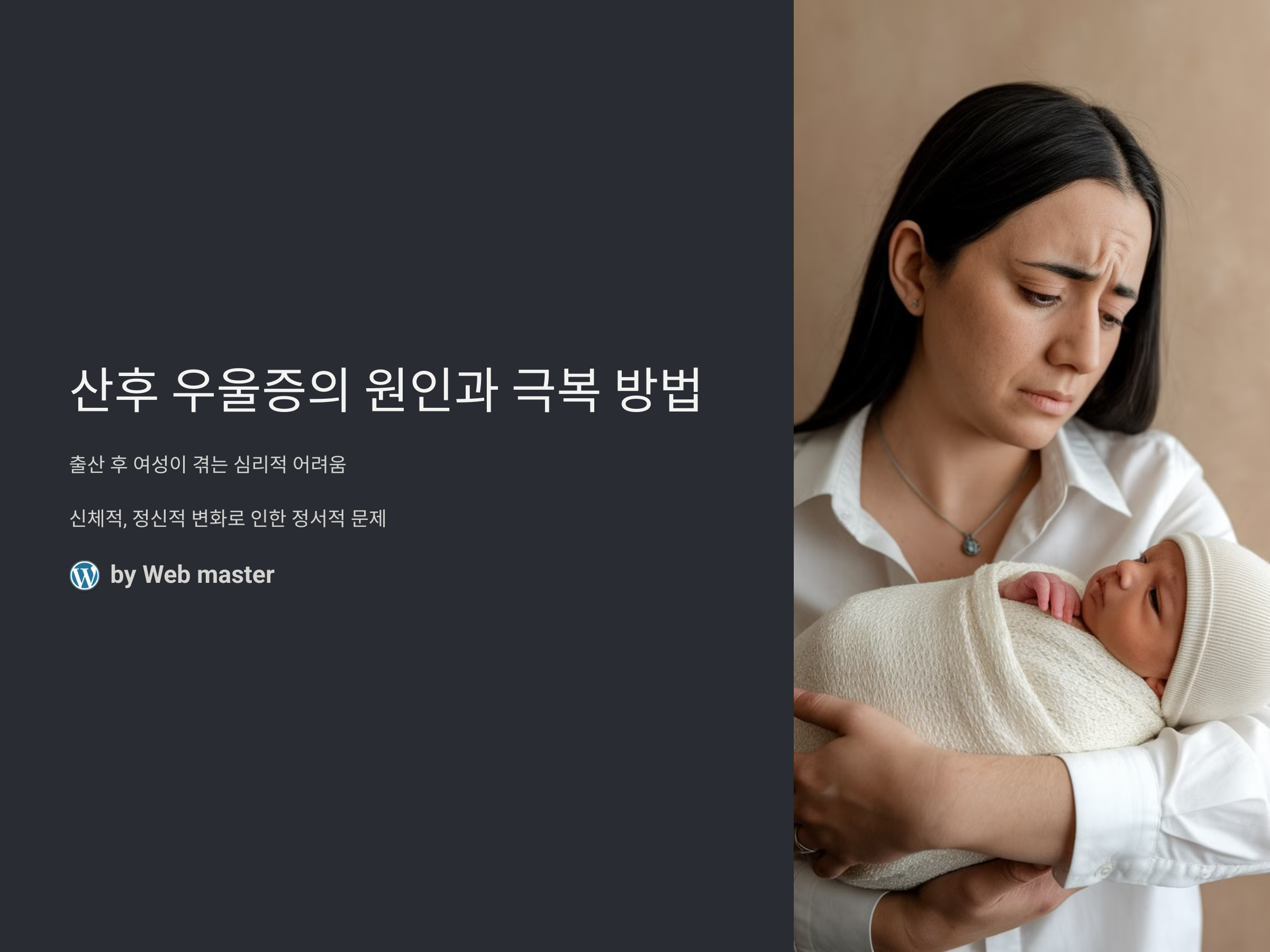 산후 우울증은 출산 후 많은 여성들이 겪는 심리적인 어려움 중 하나입니다. 이 문제는 신체적, 정신적 변화가 맞물리면서 발생하는데, 많은 여성들이 초기에는 그 증상들을 일상적인 불편함으로 간주하기 쉽습니다. 그러나 이는 단순한 기분의 변화가 아니라 심각한 정서적 문제가 될 수 있습니다. 본 포스팅에서는 산후 우울증의 주요 원인과 함께, 이를 극복하기 위한 방법을 자세히 알아보겠습니다.