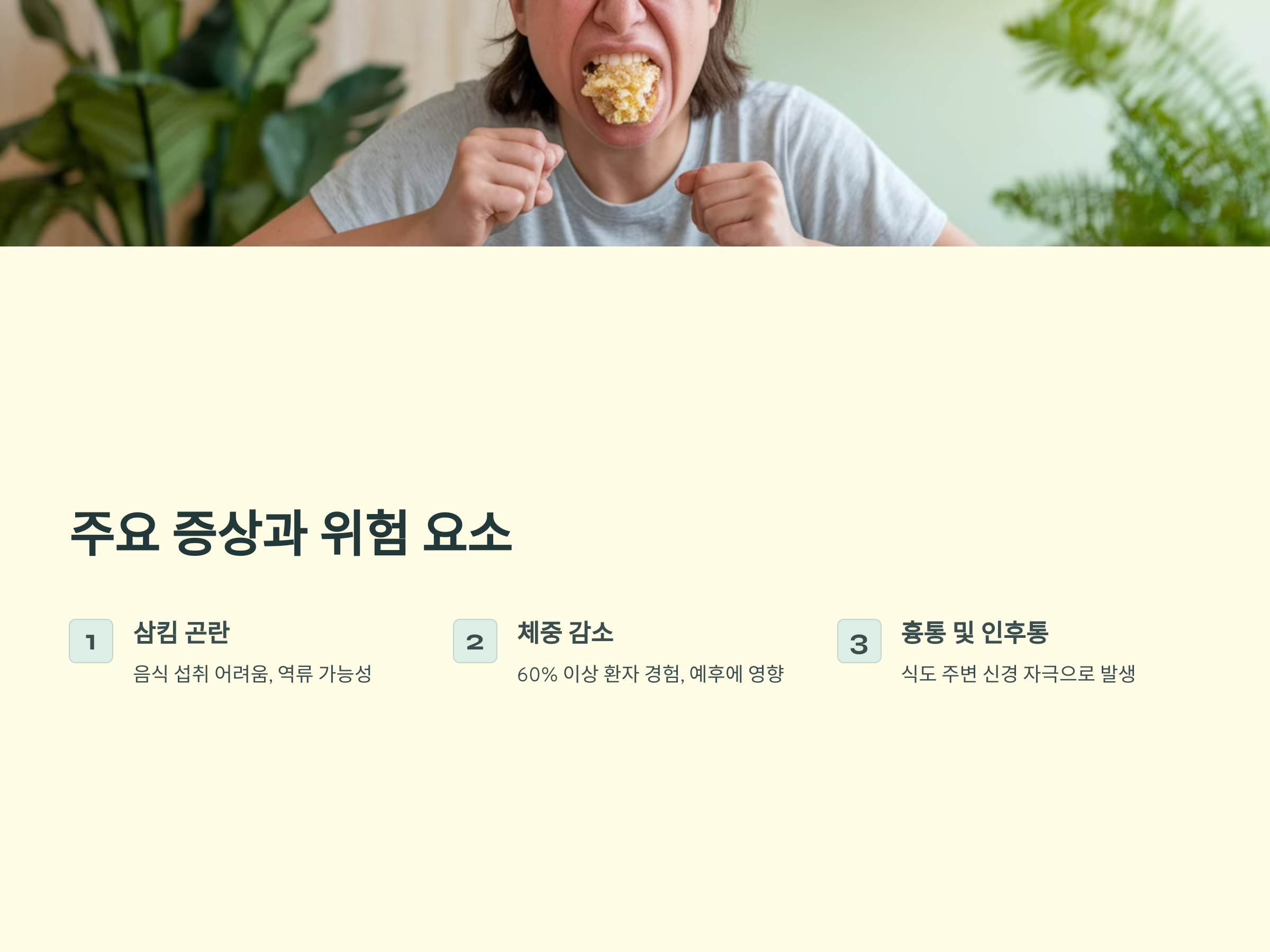 삼킴 곤란과 체중 감소는 단순한 증상이 아니라 환자의 생존율과 직접적으로 연관이 있습니다.