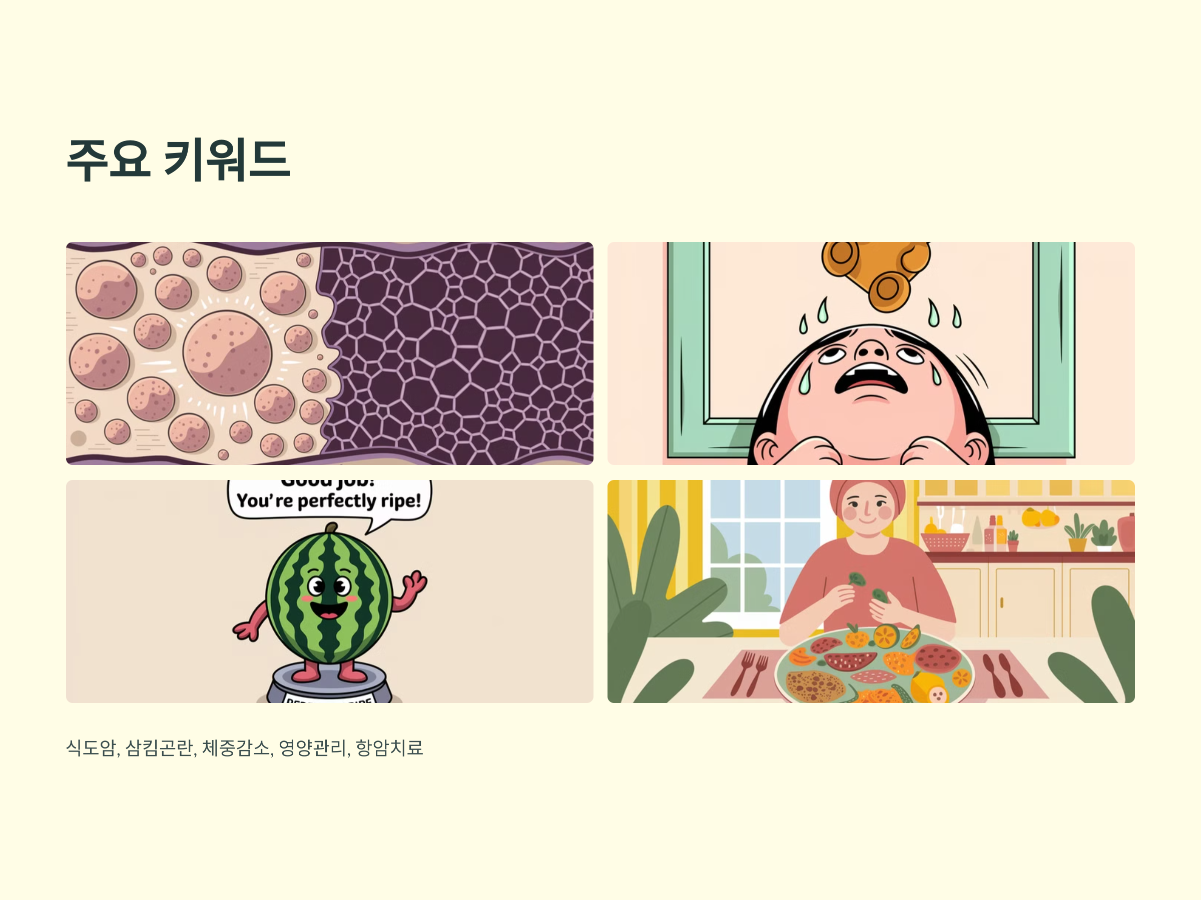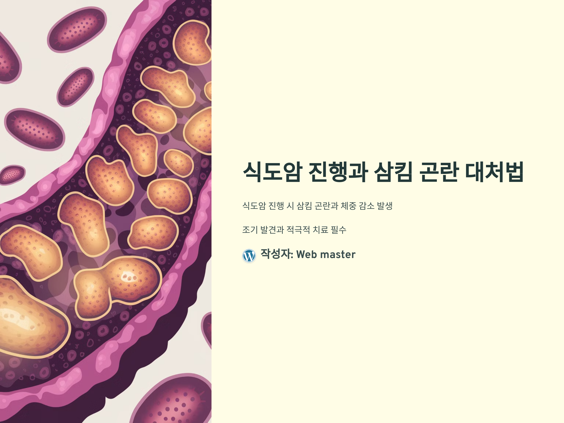 - 연구에 따르면, 식도암 환자의 60% 이상이 진단 시 체중 감소를 경험하며, 이는 예후에 큰 영향을 미칩니다.