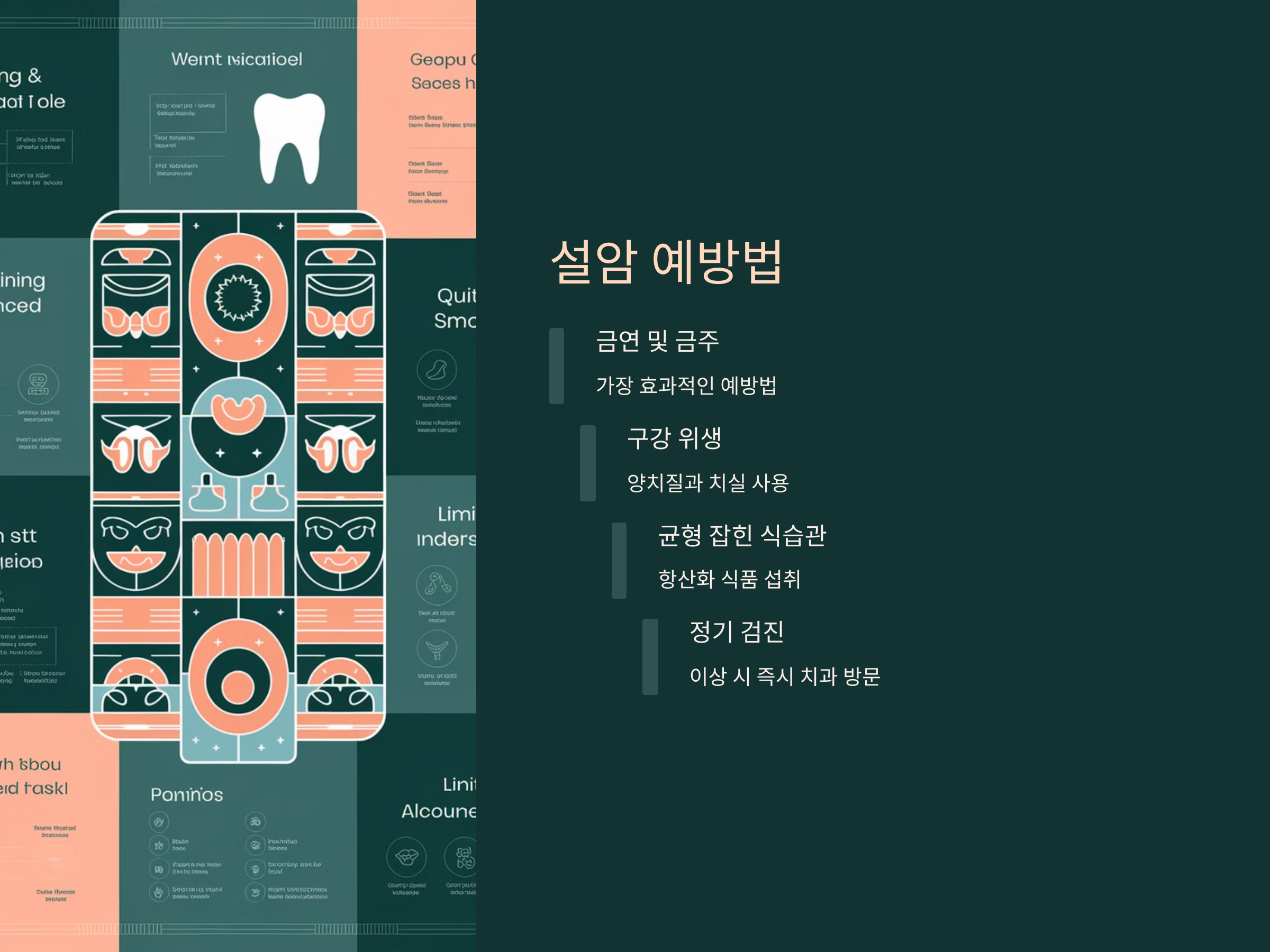 - 정기적인 구강 검진: 이상이 있을 경우 즉시 치과 방문