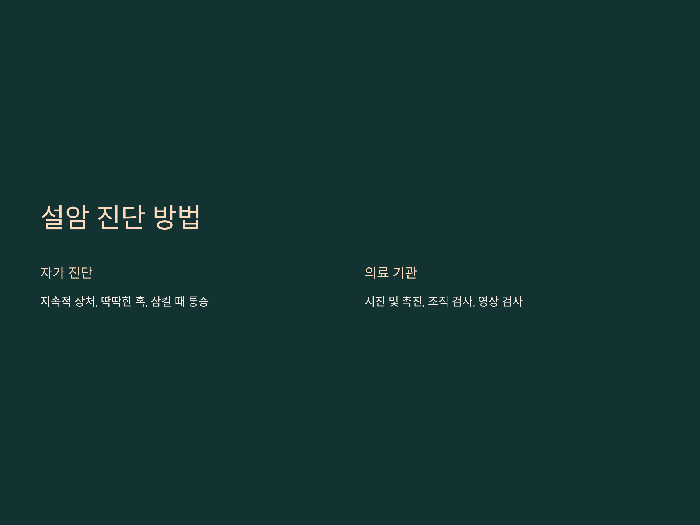 설암은 초기에 발견할수록 치료 성공률이 높아지므로, 정기적인 구강 검진이 필수적입니다.