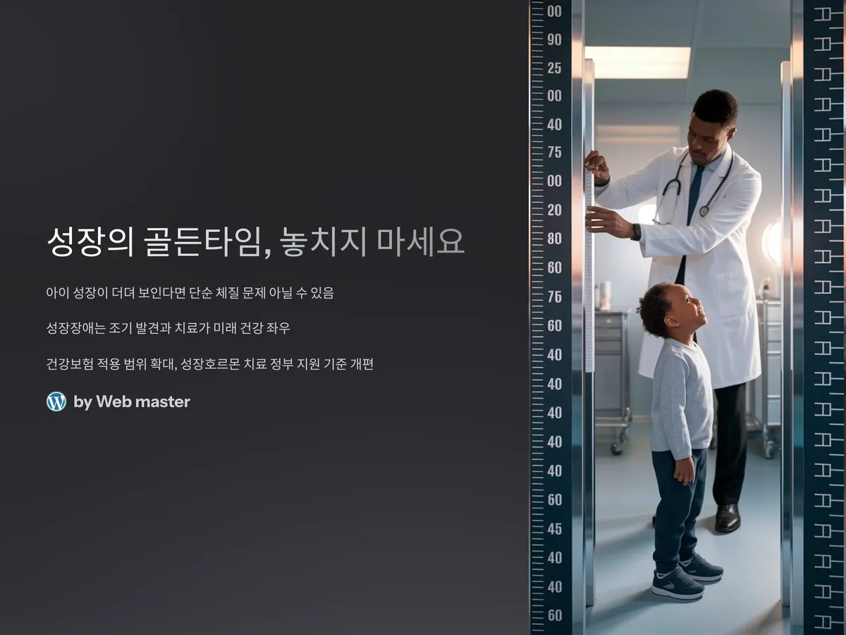 아이의 성장이 더뎌 보인다면 단순한 체질의 문제가 아닐 수 있습니다. 특히 성장장애는 조기에 발견해 적절한 진단과 치료를 받는 것이 아이의 미래 건강과 삶의 질을 좌우할 수 있습니다. 최근 건강보험심사평가원과 보건복지부에서는 성장장애에 대한 진단검사 항목 확대와 함께, 건강보험 적용 범위가 점차 넓어지고 있으며, 성장호르몬 치료에 대한 정부 지원 기준 또한 지속적으로 개편되고 있습니다. 본 글에서는 2025년 기준으로 적용되는 소아 성장장애 진단검사의 건강보험 적용 여부와, 성장호르몬 치료를 받을 수 있는 구체적인 지원 기준에 대해 자세히 설명합니다. 또한 실제 현장에서 활용 가능한 최신 정보를 포함하여, 부모님들이 꼭 알아야 할 정책 내용을 쉽게 이해할 수 있도록 구성했습니다. 성장 치료의 문턱이 점점 낮아지는 현재, 아이의 건강한 성장을 위한 현명한 선택을 위한 안내서로 활용해보세요.