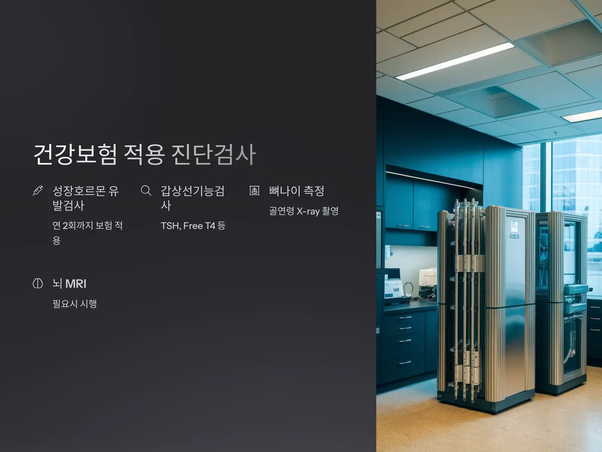 2024년 기준, 건강보험이 적용되는 성장장애 진단검사 항목은 점차 확대되고 있습니다. 대표적인 검사로는 다음과 같습니다: