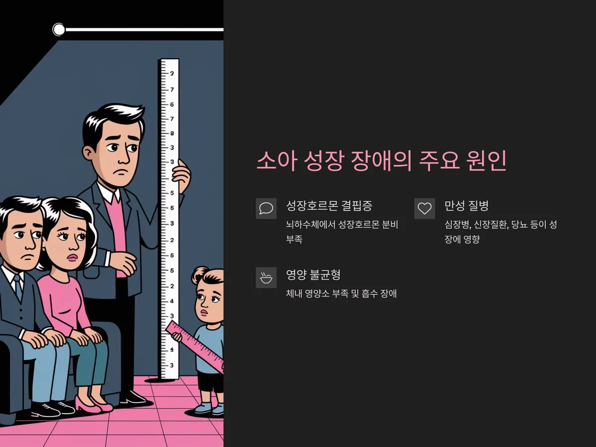 소아 성장 장애는 단순히 키가 작은 문제를 넘어서 아이의 전반적인 건강과 삶의 질에 영향을 미치는 중요한 질환입니다. 최근에는 영양 상태뿐 아니라 유전, 환경, 심리적 요인까지 복합적으로 작용하면서 소아 성장 장애의 원인이 다양해지고 있습니다. 특히 '키 성장 둔화'와 '저체중'은 단순한 일시적인 현상이 아니라, 조기 진단과 치료가 필요한 성장 지연의 신호일 수 있습니다. 세계적으로도 아이들의 성장지표에 대한 관심이 높아지면서, 부모들이 놓치기 쉬운 초기 증상에 대해 경각심을 가져야 할 시점입니다.