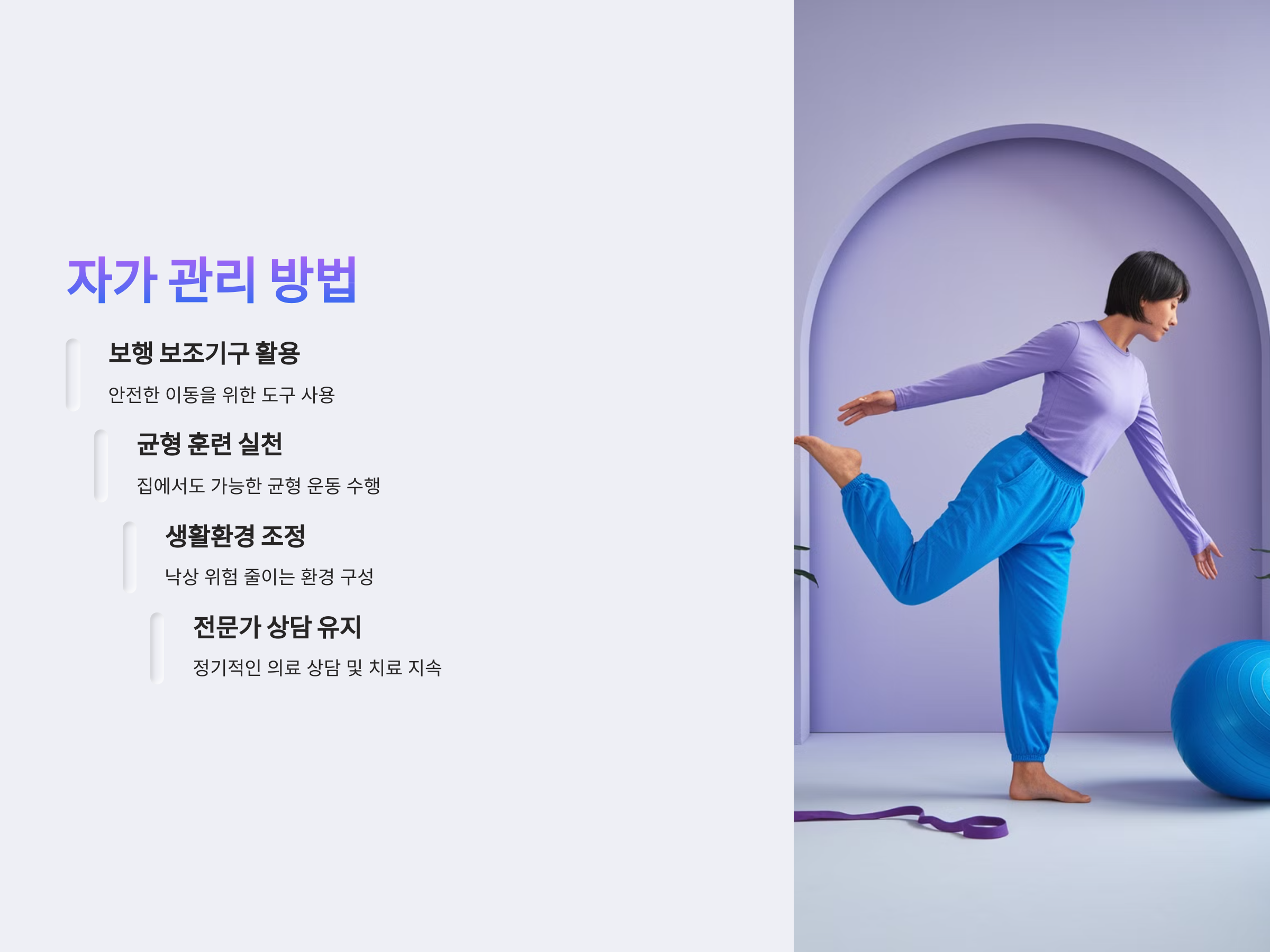 - 물리치료: 물리치료는 보행 능력을 회복하고 균형 감각을 향상시키는 데 도움을 줍니다. 균형 훈련과 보행 훈련을 통해 환자는 점차 자신감을 회복할 수 있습니다.