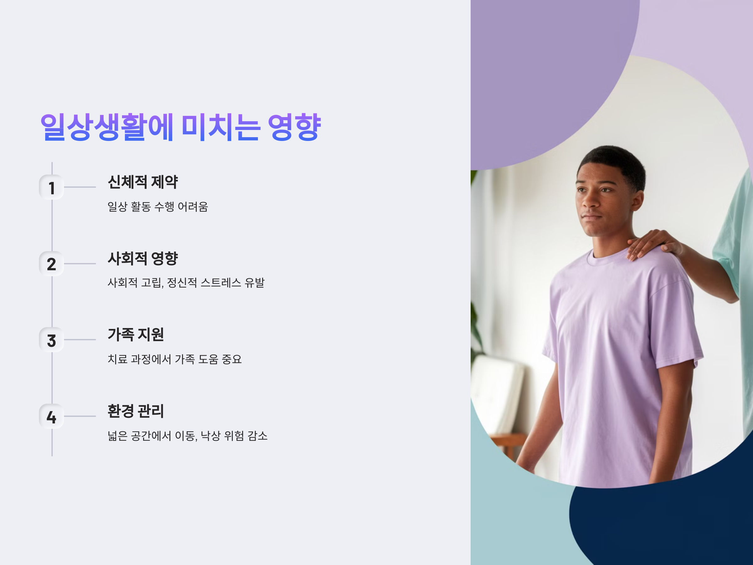 - 스스로 대처 방법 배우기: 일상적인 작업을 수행할 때 보행 보조기구를 사용하거나, 물리치료와 같은 방법으로 스스로 도움을 줄 수 있는 방법을 배워야 합니다.