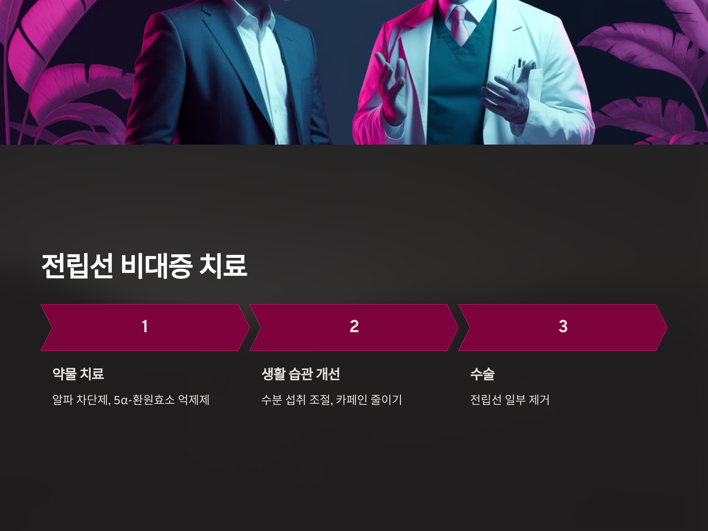 - 수술: 약물 치료로 효과가 없거나 증상이 심각한 경우, 전립선 일부를 제거하는 수술이 필요할 수 있습니다.