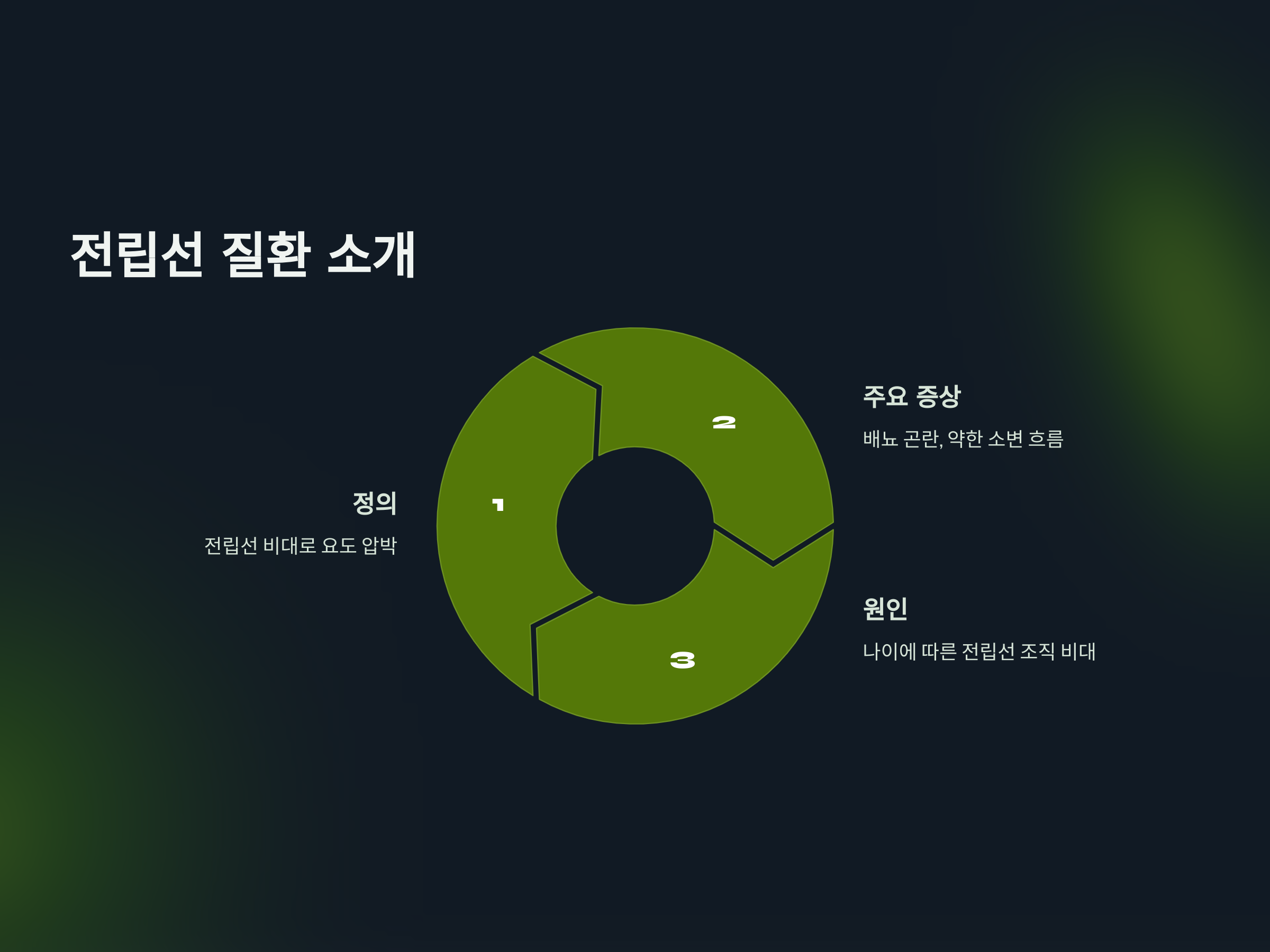 전립선 질환은 주로 남성에게 나타나며, 전립선 비대증(BPH, Benign Prostatic Hyperplasia)은 가장 흔한 형태입니다. 전립선 비대증은 전립선이 비대해져서 요도를 압박함으로써 배뇨에 영향을 미칩니다. 이로 인해 소변을 자주 보지만 양은 적거나, 배뇨가 어려운 증상이 발생합니다.