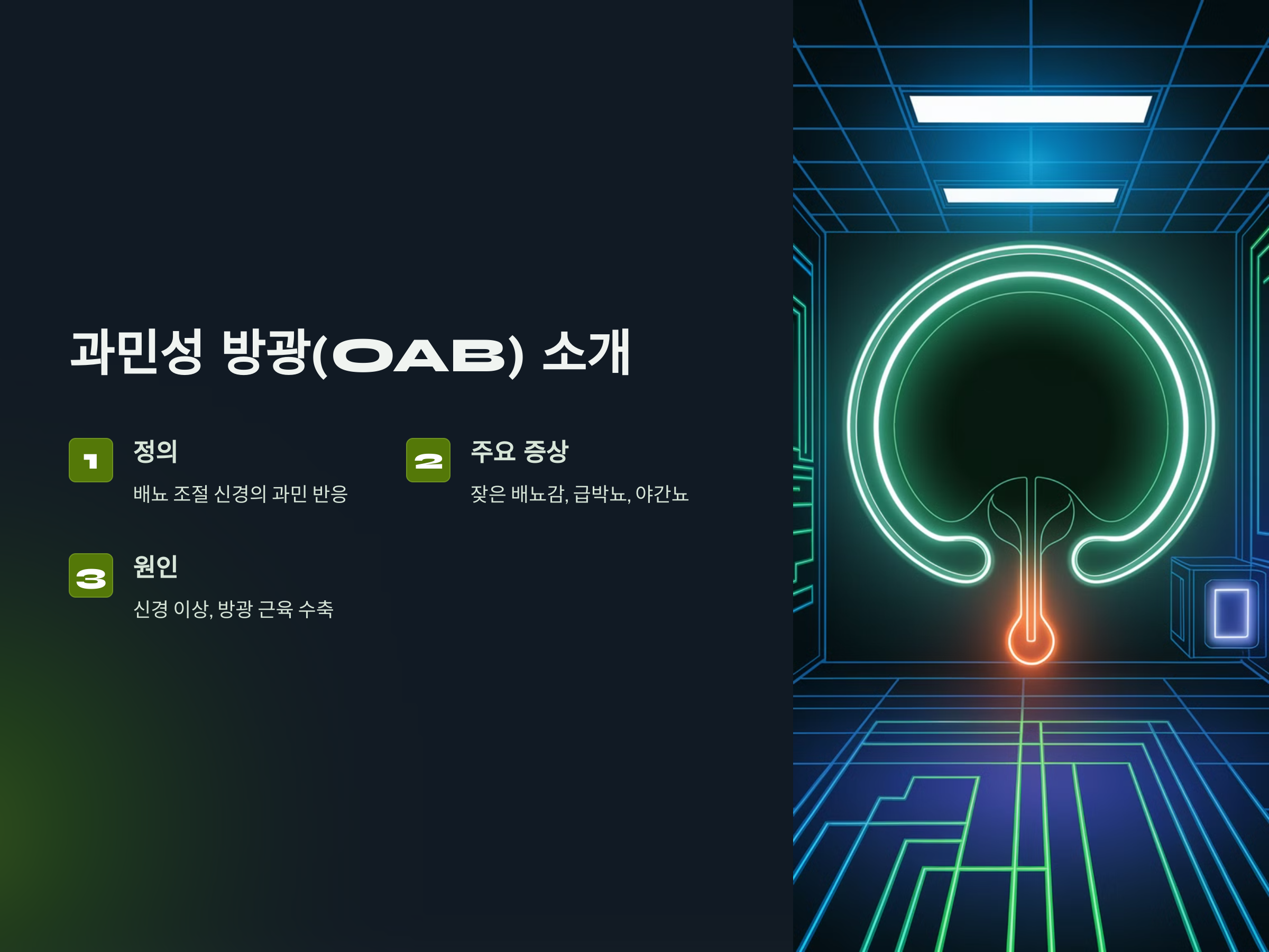 - 원인: 배뇨를 조절하는 신경의 과민 반응.