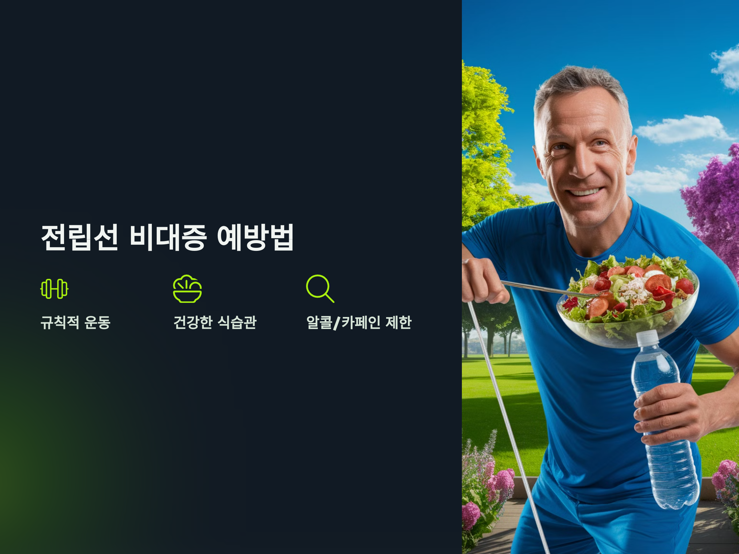 A1: 전립선 비대증이 있는 경우, 규칙적인 운동과 함께 카페인과 알콜을 줄이고, 배뇨를 자주 하는 것이 좋습니다. 또한, 체중을 관리하고, 스트레스를 줄이는 것이 도움이 됩니다.