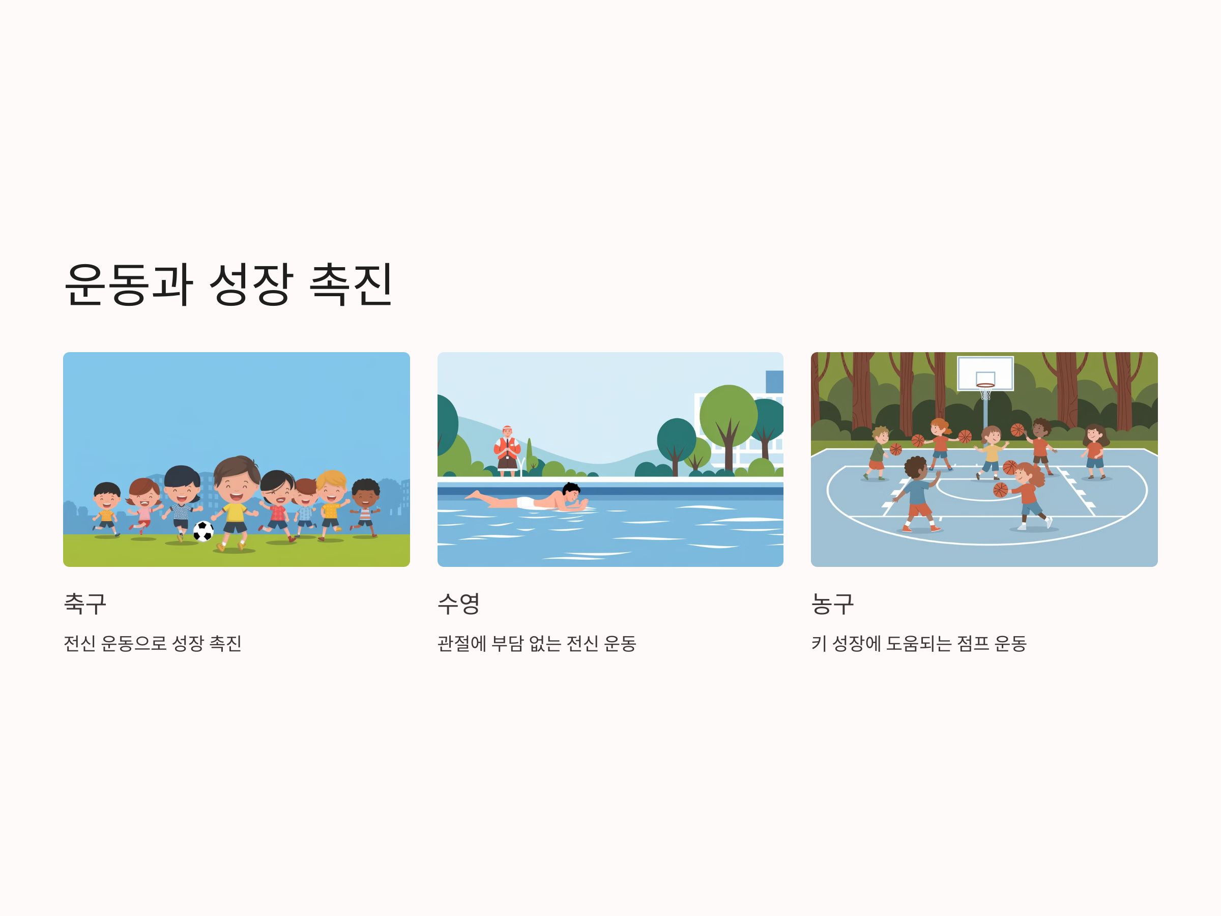 운동은 소아 성장에 매우 중요한 역할을 합니다. 운동을 통해 성장판을 자극하고, 신체 발달을 촉진할 수 있습니다. 적절한 운동은 뼈와 근육을 강화하고, 성장호르몬 분비를 촉진하는 데 도움이 됩니다. 특히, 축구, 농구, 수영 등의 운동은 키 성장에 긍정적인 영향을 미칠 수 있습니다.