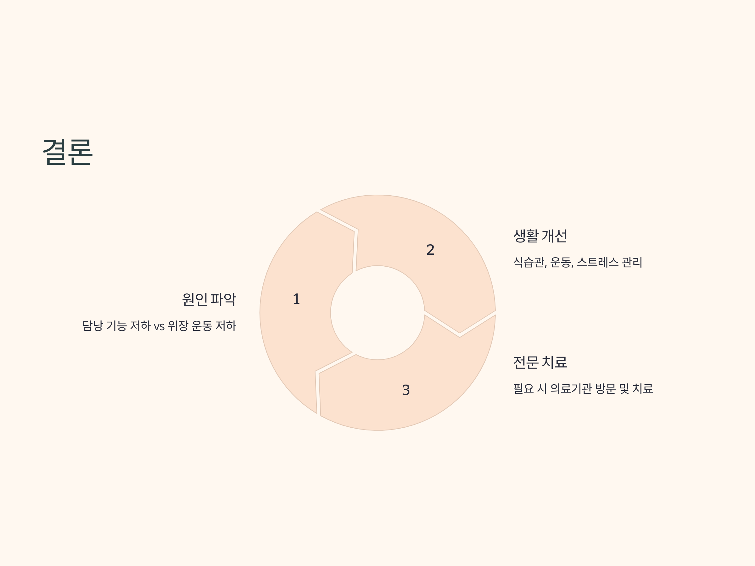 - 스트레스 관리: 정신적인 안정은 소화 건강과 직결되므로, 스트레스 관리에 신경 써야 합니다.