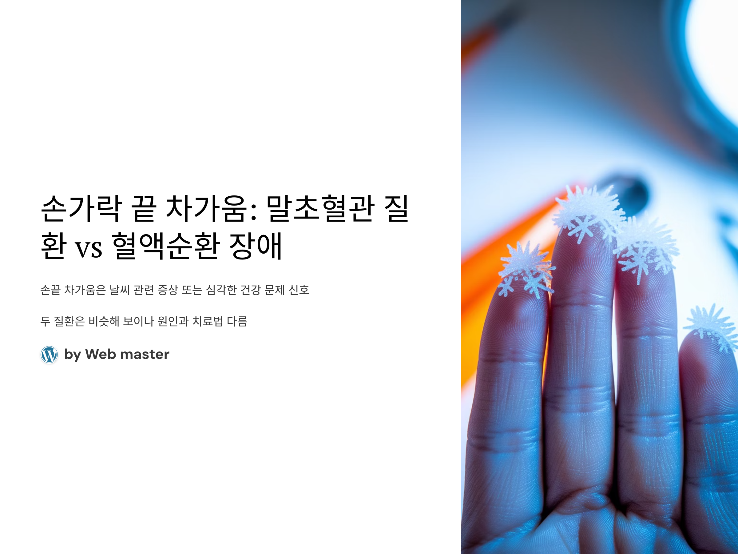 이 포스팅에서는 손끝이 얼어붙은 듯 차가운 증상과 관련된 말초혈관 질환과 혈액순환 장애의 차이를 명확히 알아보고, 이를 해결하기 위한 방법들을 살펴보겠습니다.