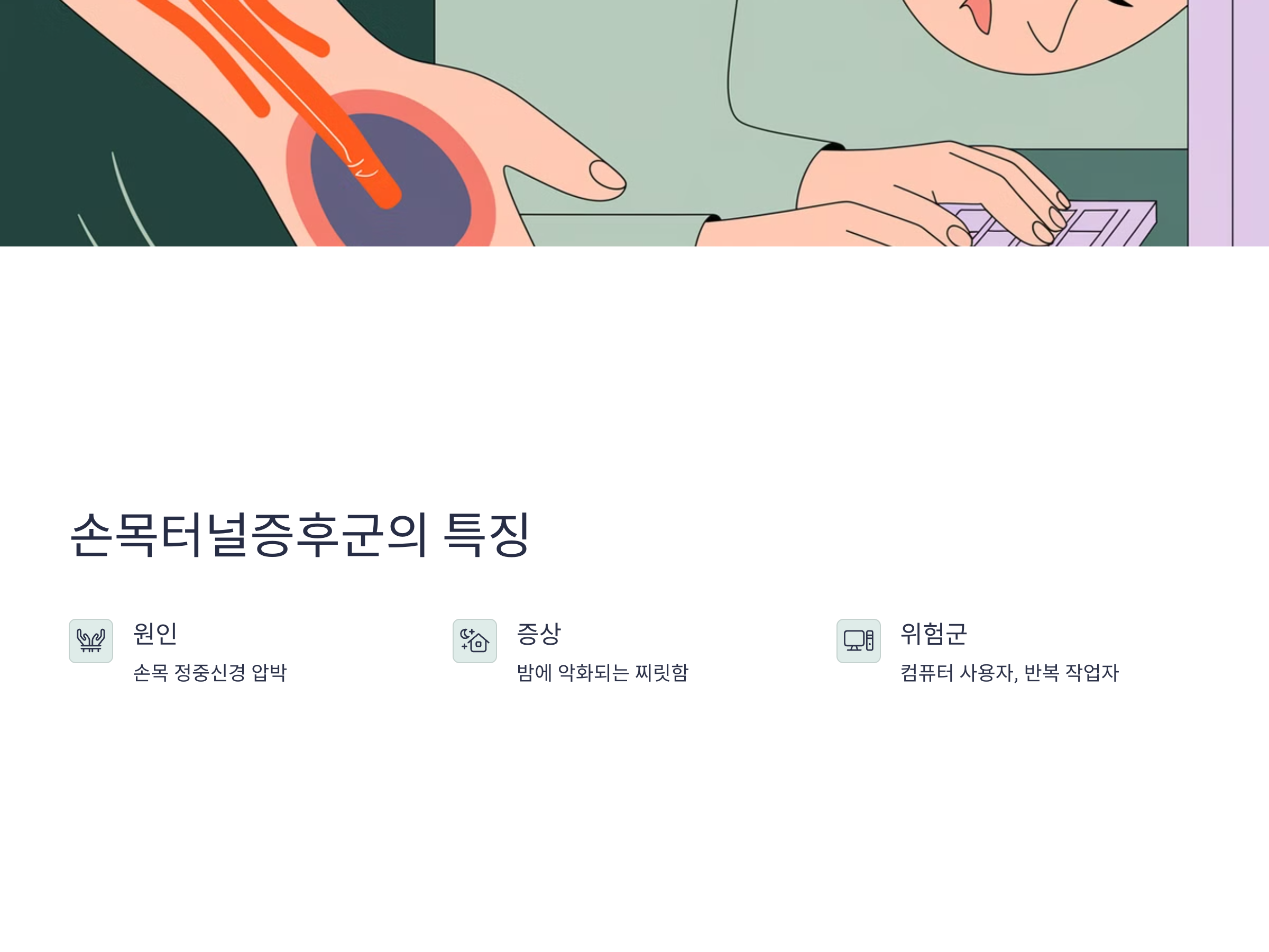 손목터널증후군은 손목에 위치한 정중신경이 압박을 받거나 자극을 받을 때 발생하는 질환입니다. 이 신경은 손목을 지나 손가락으로 향하는데, 손목터널이 좁아지거나 압박이 가해지면 신경에 이상이 생기게 됩니다. 이로 인해 손목과 손가락에 다양한 증상이 나타날 수 있습니다.