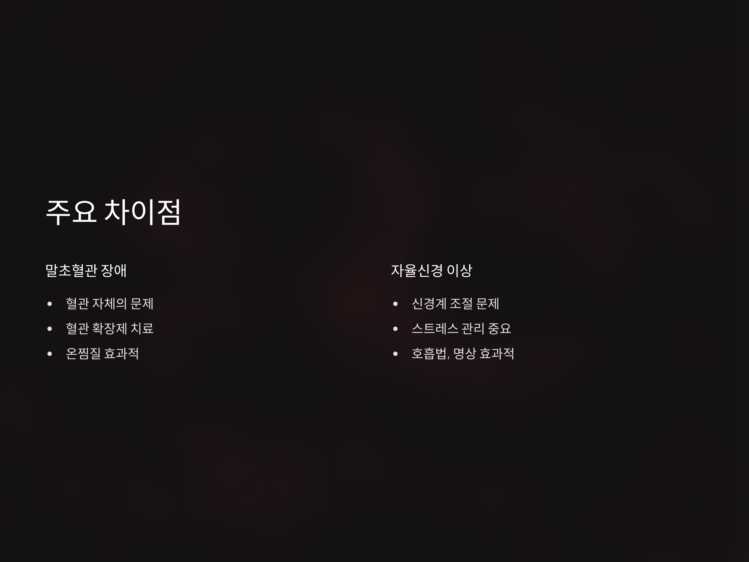 말초혈관 장애 vs 자율신경 이상, 주요 차이점