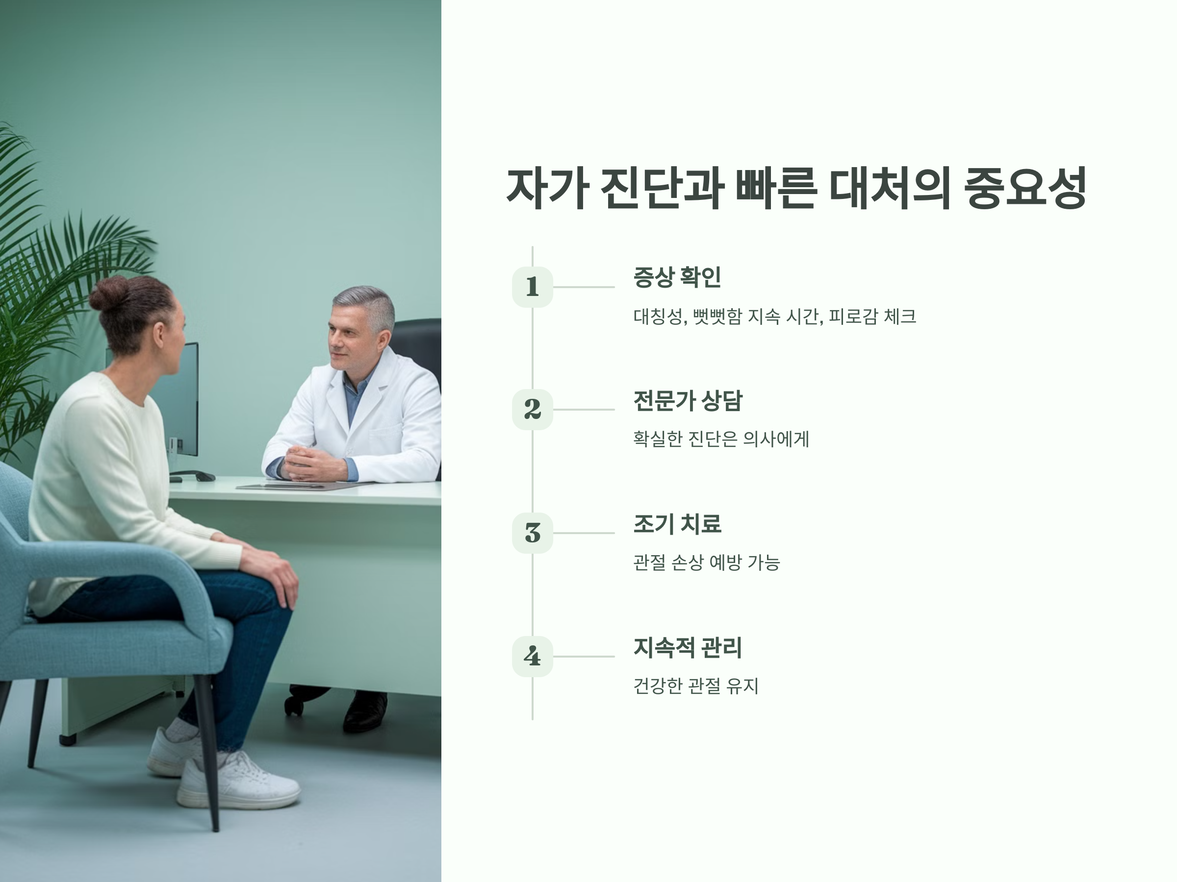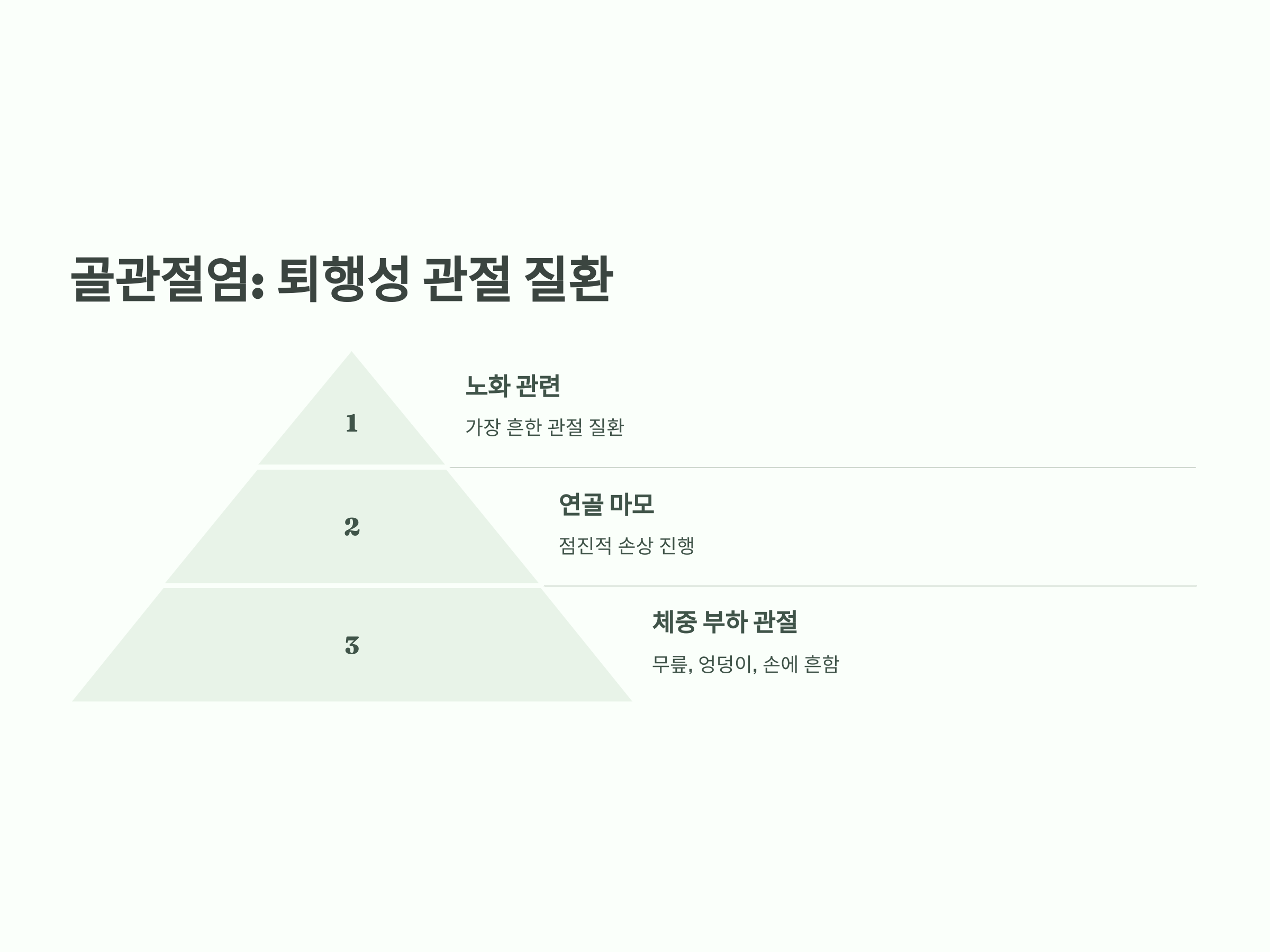 - 필요시 수술적 치료 (관절 치환 수술 등)