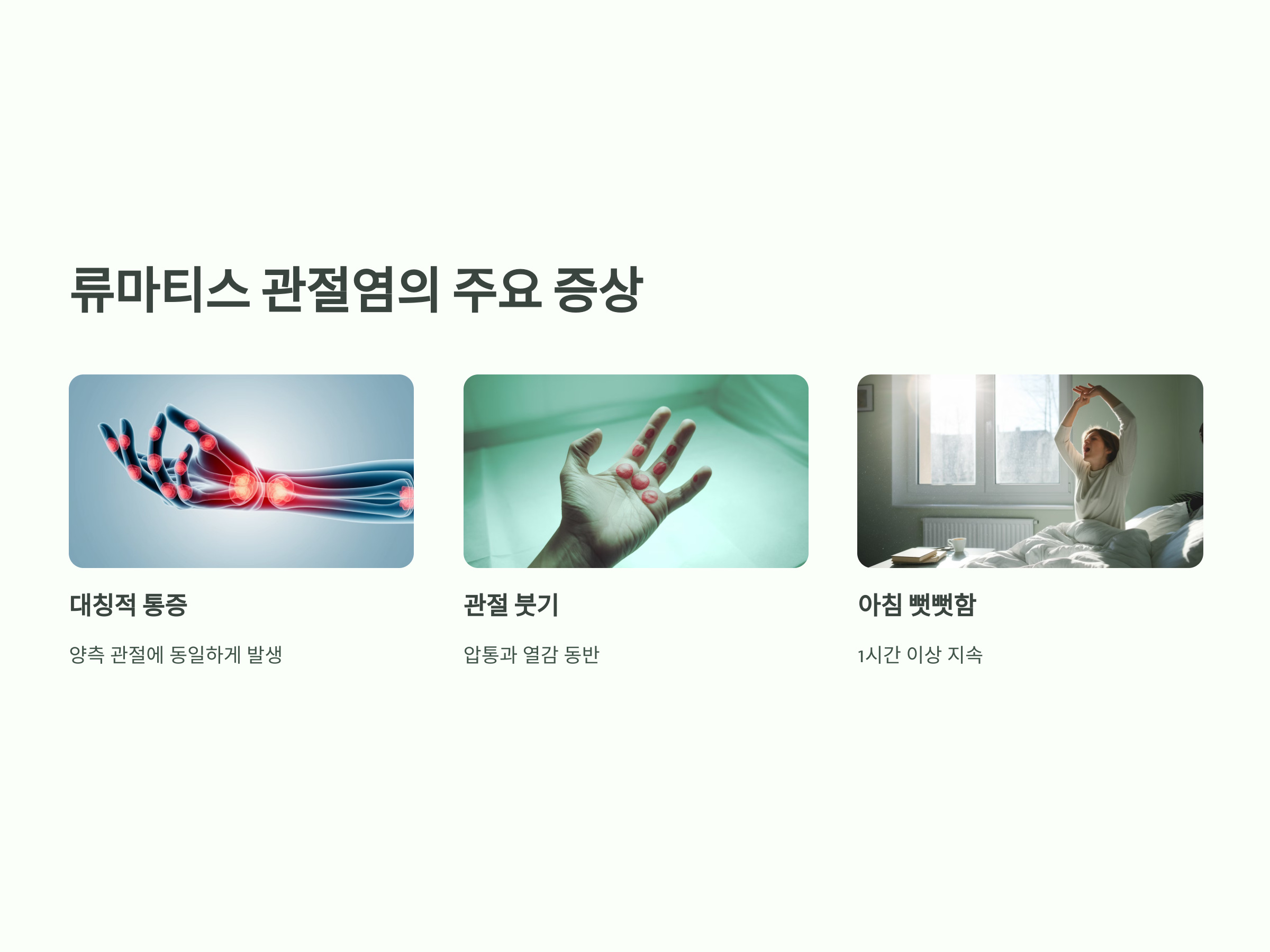 류마티스 관절염이 초기에는 가벼운 증상으로 시작될 수 있지만, 치료하지 않으면 관절 손상이 심해질 수 있기 때문에 빠른 진단과 치료가 중요합니다. 이 질환은 주로 항염증제, 면역 억제제, 생물학적 제제 등으로 치료하며, 조기에 치료를 시작할수록 관절의 손상을 막을 수 있습니다.