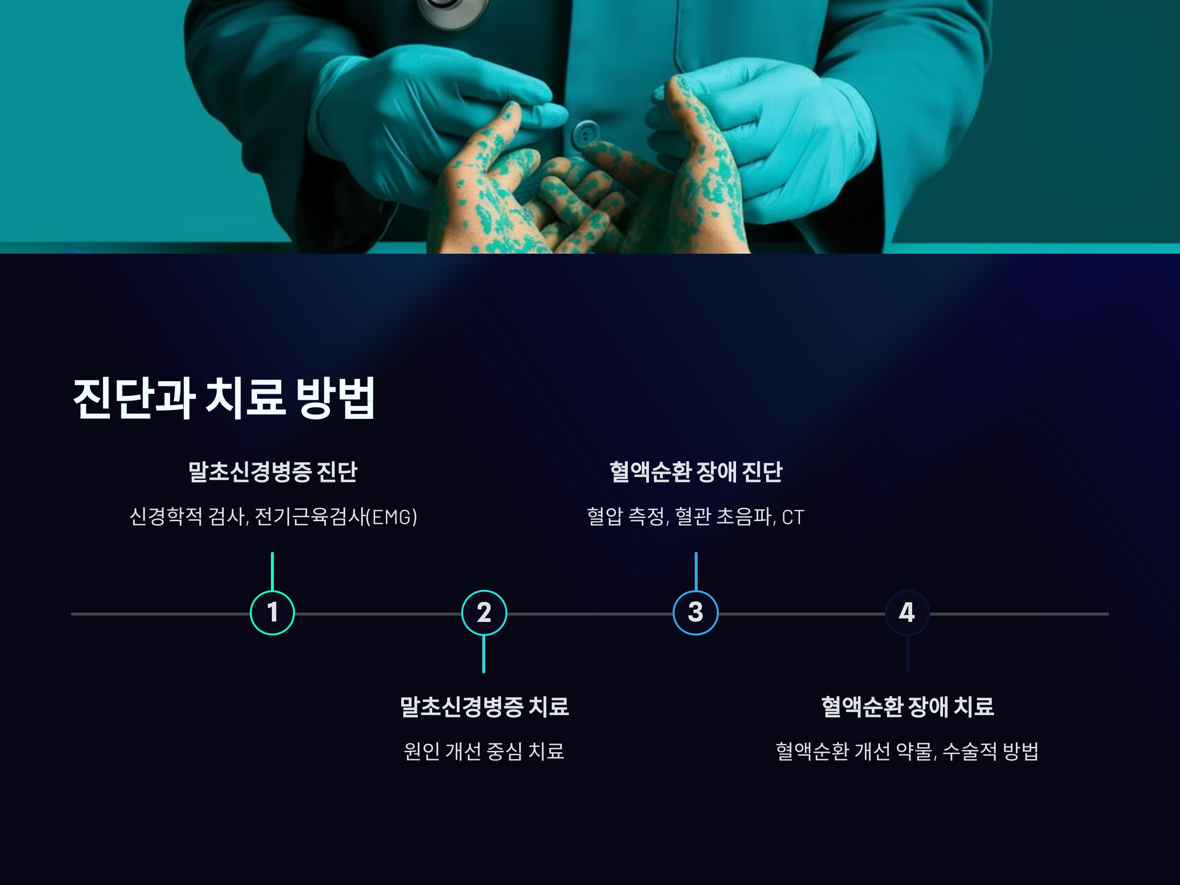 반면, 혈액순환 장애는 혈압 측정, 혈관 초음파, CT 등을 통해 진단합니다. 만약 동맥경화나 혈전 등이 원인이라면, 혈액순환을 개선하는 약물이나 수술적 방법을 고려할 수 있습니다.