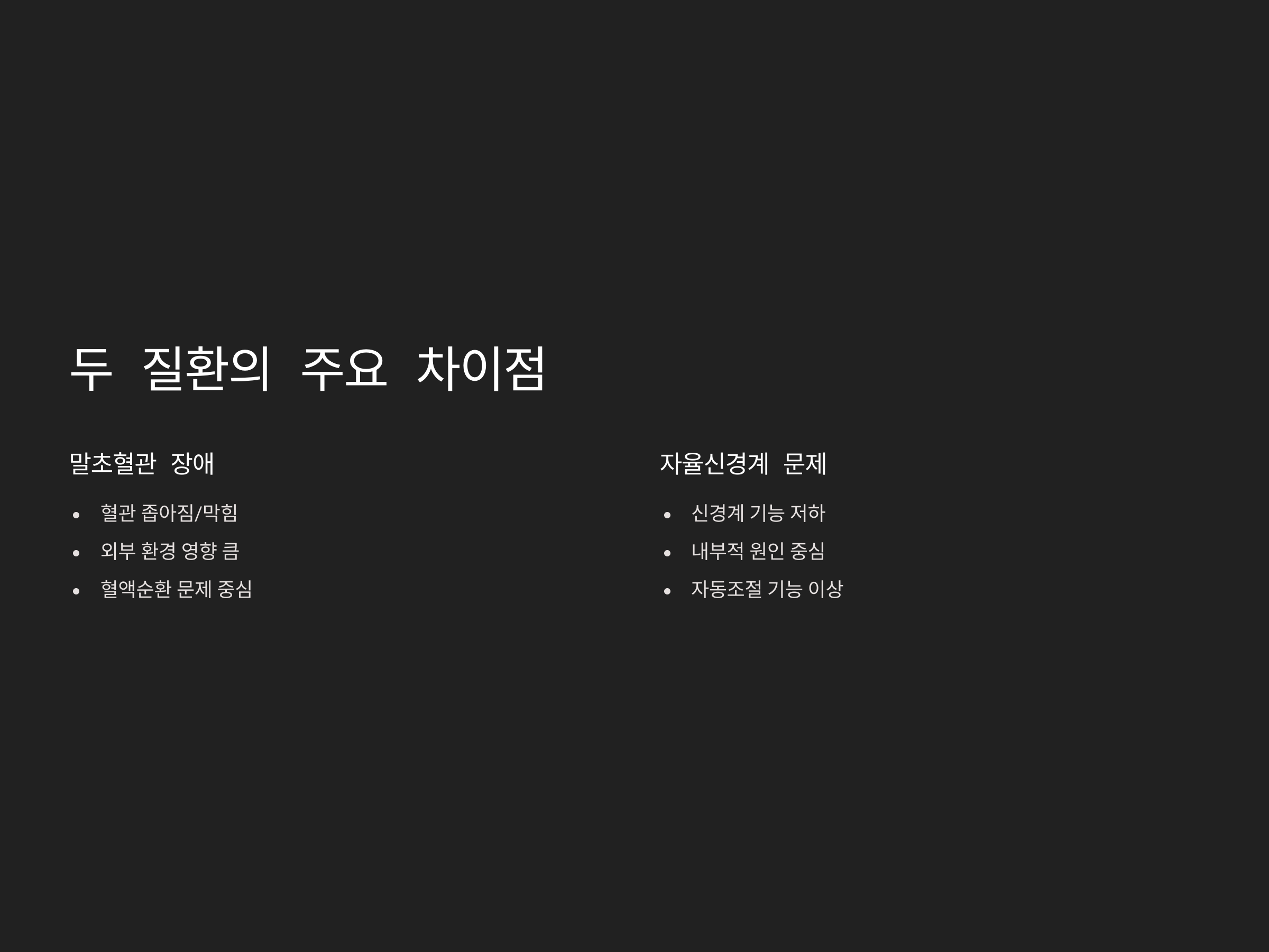 말초혈관 장애와 자율신경계 문제의 주요 차이점